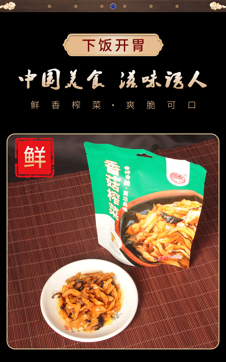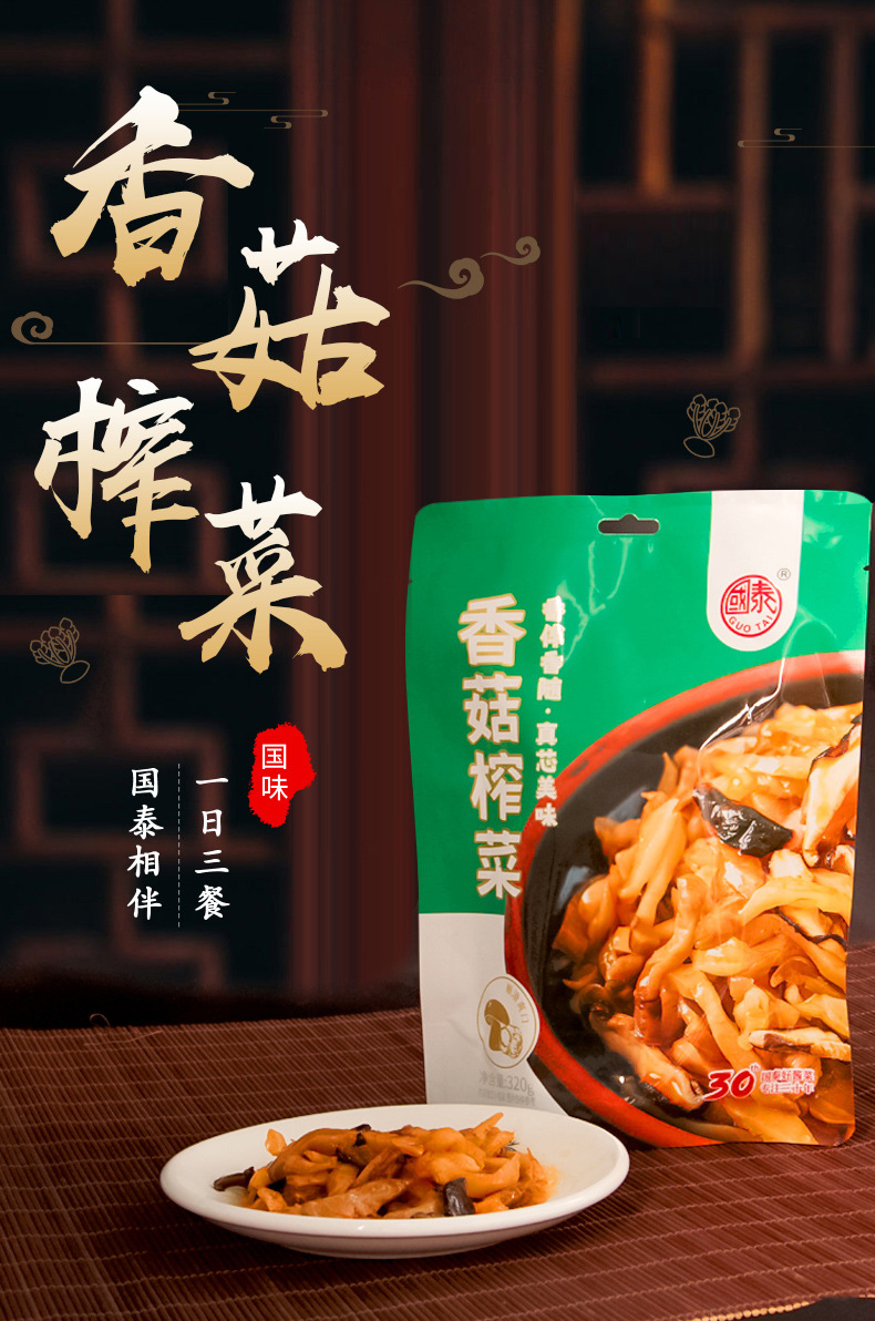 余姚市国泰实业有限公司发布的香菇榨菜320g下饭菜开胃菜零食泡菜咸菜批发速食菜厂家批发图集库