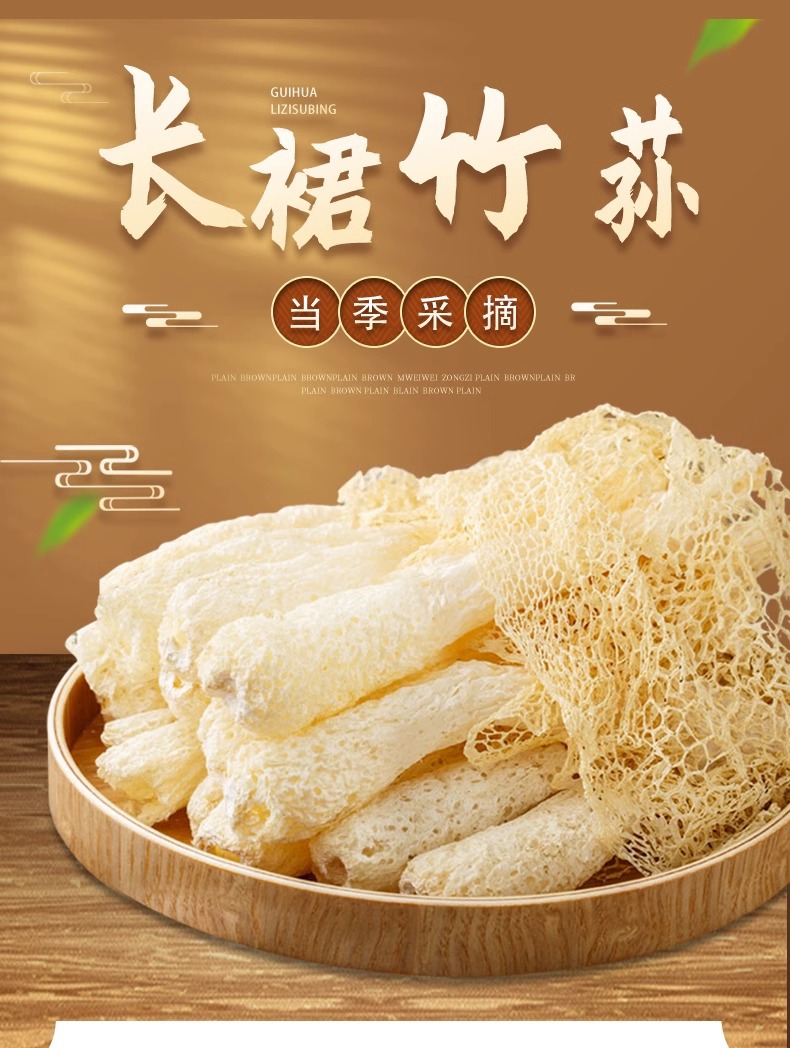 古田县菌味坊贸易有限公司发布的古田菌菇新货无硫长裙竹荪干货15g各种规格包装抖音各类平台代发图集库