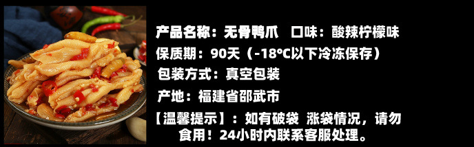 邵武市华创食品有限公司发布的酸辣柠檬无骨鸭爪500g真空包装熟脱全剔骨网红开胃小零食去骨鸭爪图集库