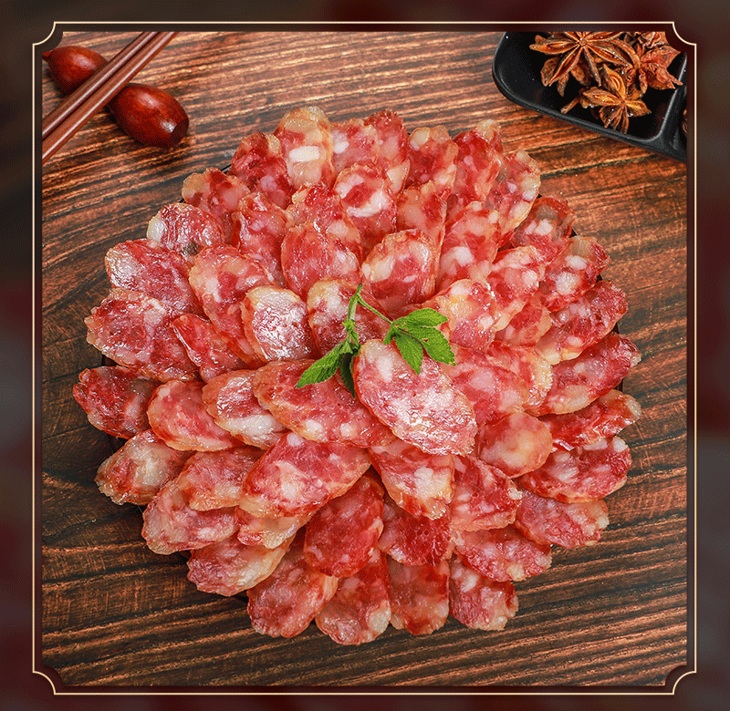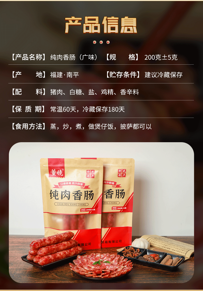 邵武市华创食品有限公司发布的厂家批发广式腊肠真空包装农家自制饭店煲仔饭用广东风味猪肉腊肠图集库