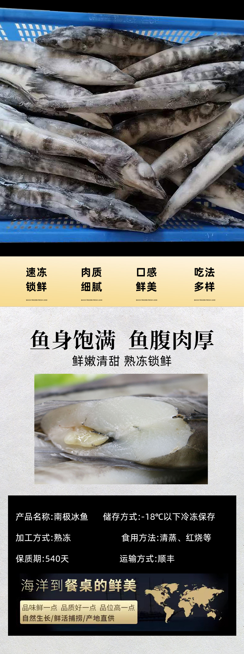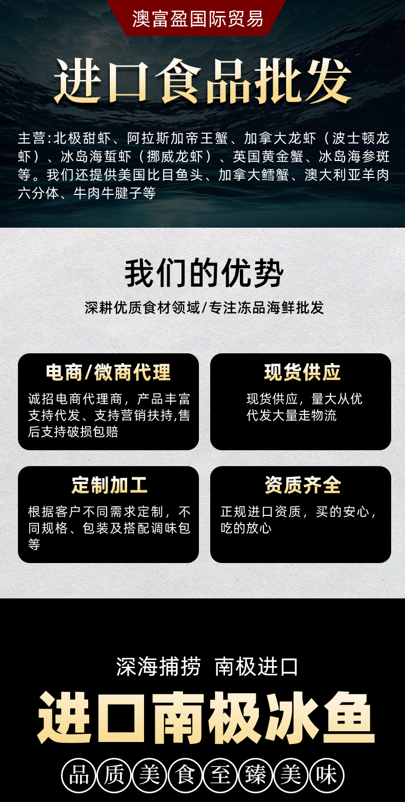 青岛澳富盈国际贸易有限公司发布的南极冰鱼500g冷冻海鲜批发代发餐饮酒店饭店烧烤食材冰鲜整条海鱼图集库
