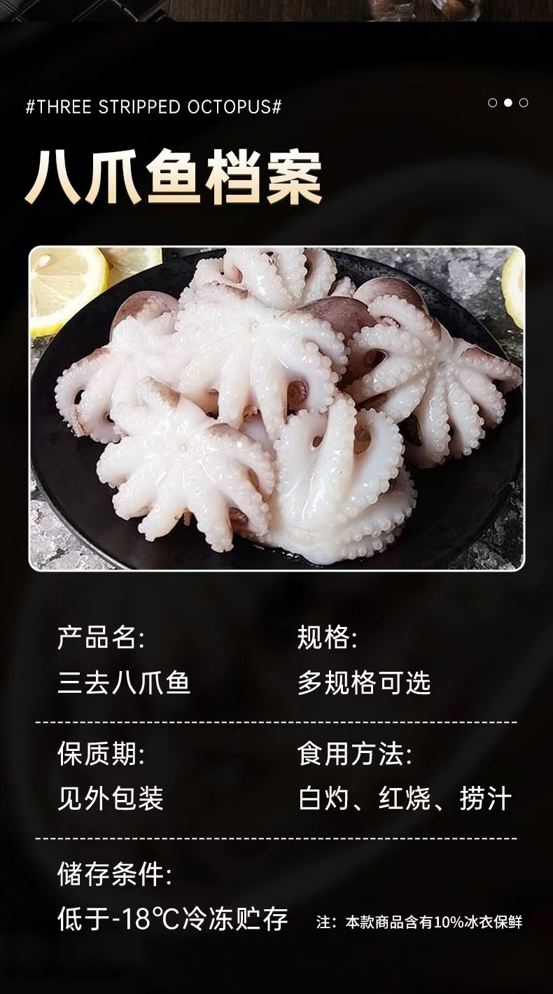 青岛澳富盈国际贸易有限公司发布的三去八爪鱼新鲜迷你小鱿鱼去牙去内脏八爪鱼冷冻捞汁小海鲜商用图集库