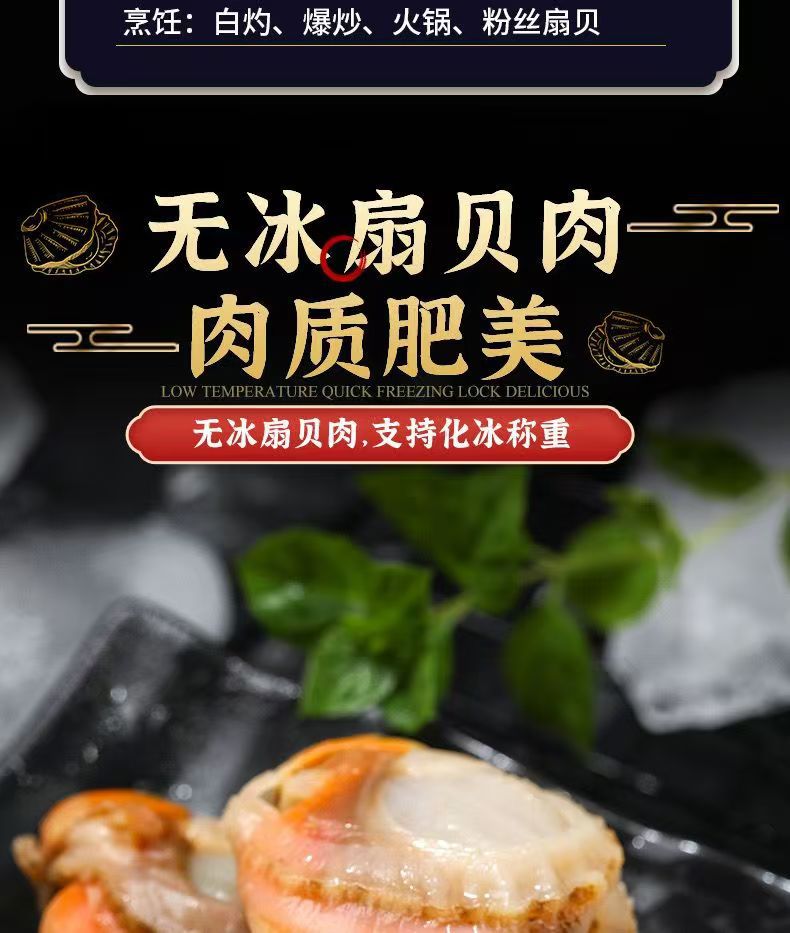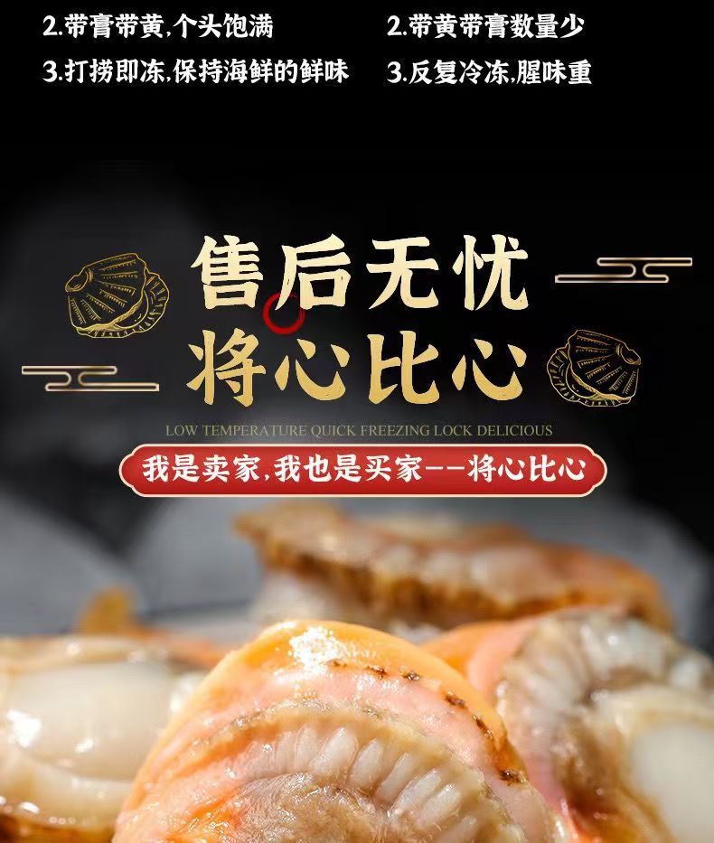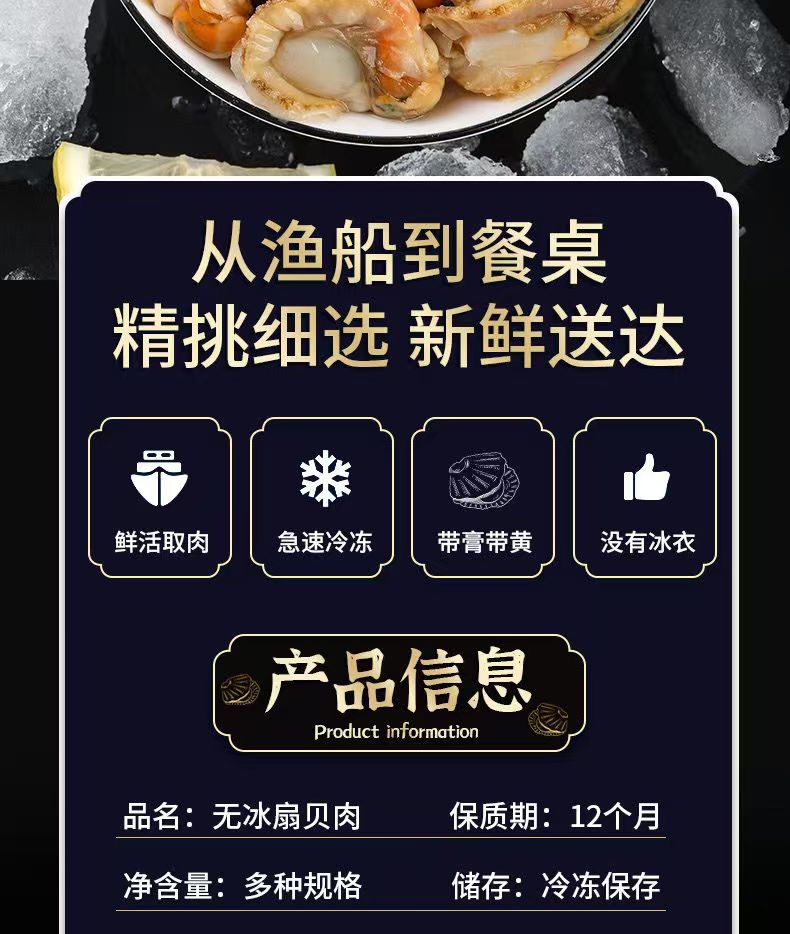 青岛澳富盈国际贸易有限公司发布的扇贝肉手剥大号无冰无沙扇贝肉新鲜冷冻粉丝蒜蓉带黄海鲜水产商用图集库