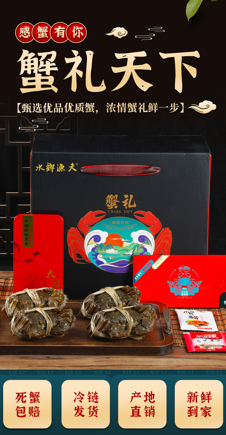 南京汇亿农水产有限公司发布的顺丰包邮鲜活满黄大闸蟹礼盒5两公蟹4两母蟹4对固城湖产地直发图集库