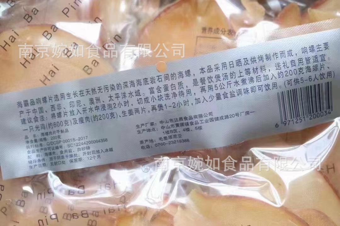 南京婉如食品有限公司发布的海霸品响螺片200克淡干海螺片肉鲍螺片干货煲汤材料酒店宴会食材图集库