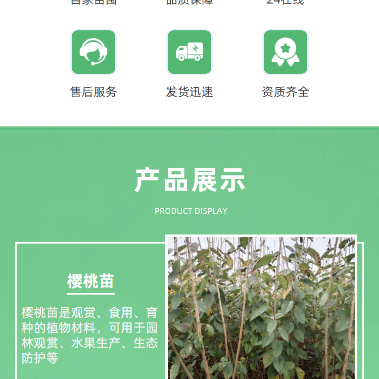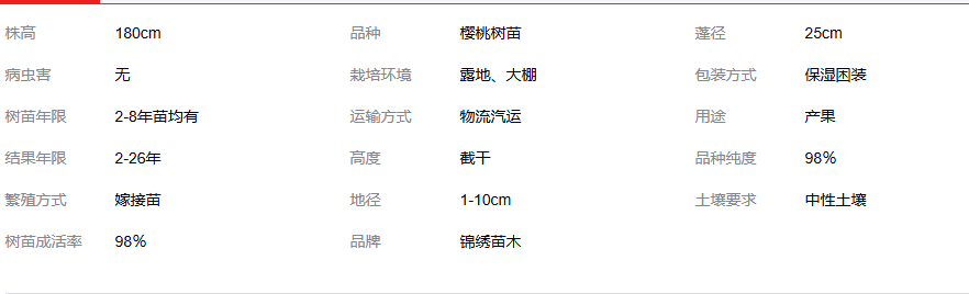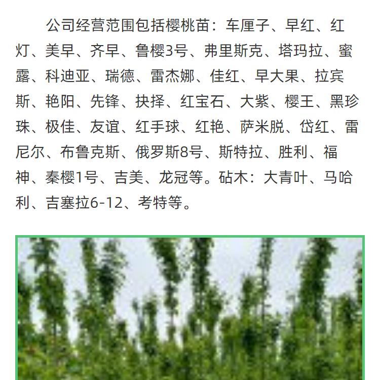 陕西鸿盛瑞农林科技有限公司发布的大棚樱桃树苗 俄罗斯8号易成花 瑞德樱桃苗 供应基地 丰产期长 口感好图集库