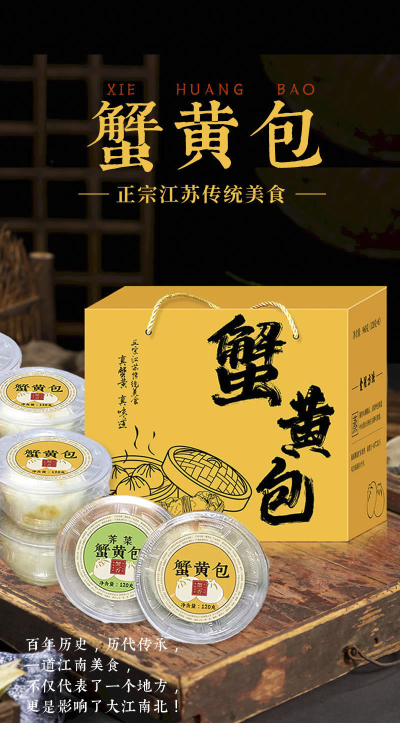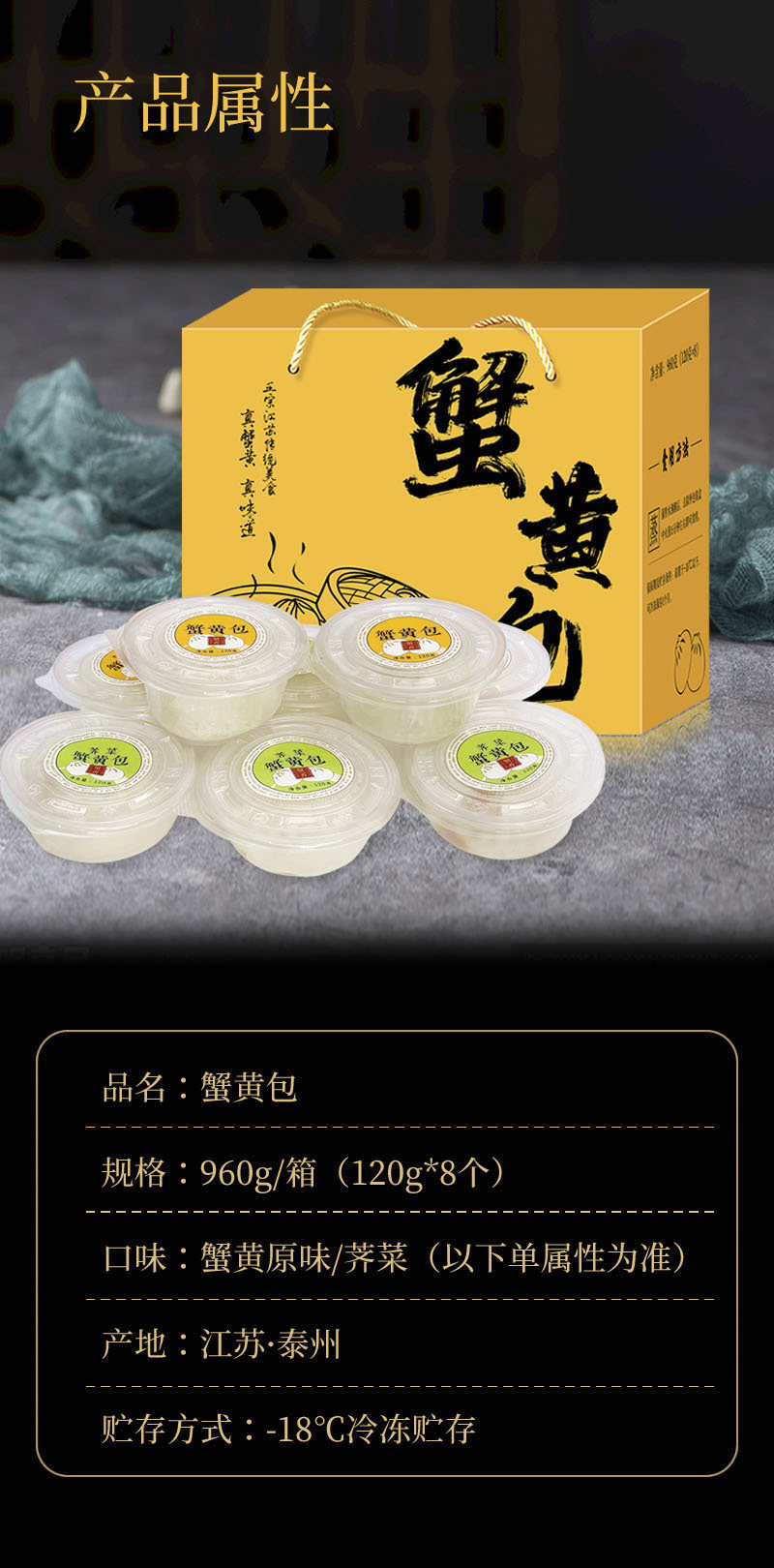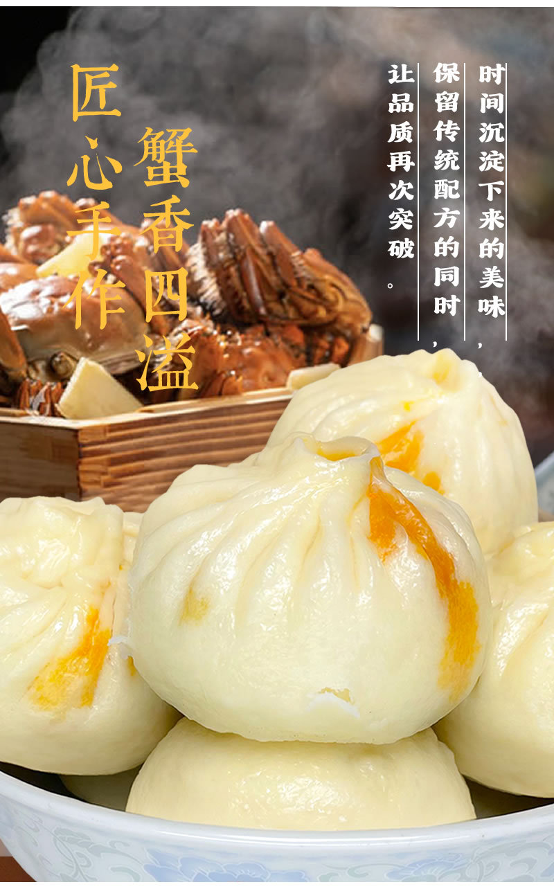 兴化市胖蟹水产品有限公司发布的手工蟹黄包120g每只 荠菜蟹黄8只礼盒装 加热即食早餐包图集库