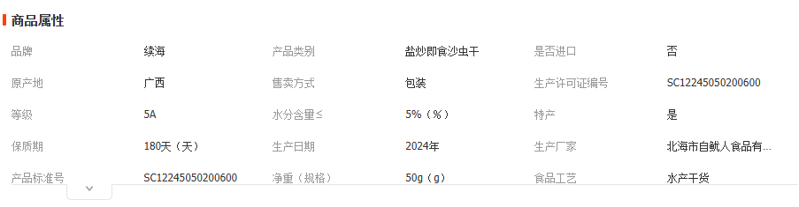 北海市海城区宏洋水产购销部发布的【北海特产】盐炒即食沙虫干50g罐装无沙大沙虫干海鲜干货批发图集库