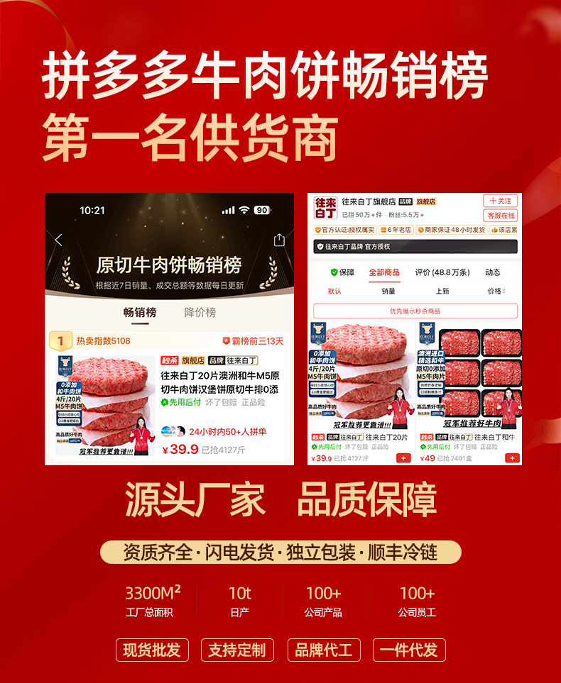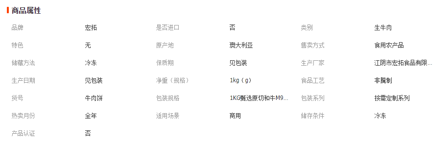 江阴市宏拓食品有限公司发布的M9澳洲和牛原切谷饲汉堡西餐厅商用半成品生鲜食材冷冻雪花牛肉饼图集库