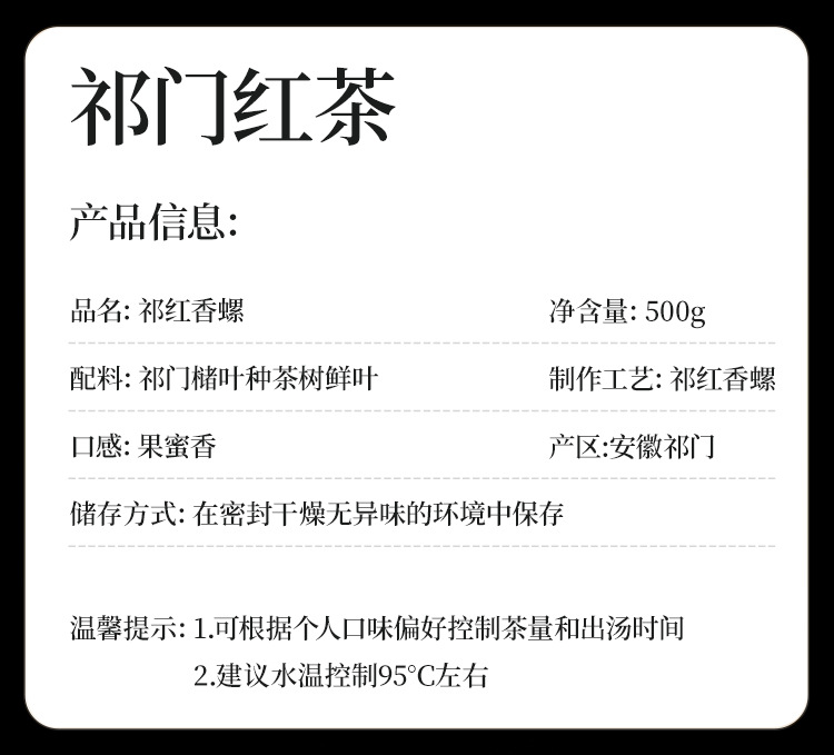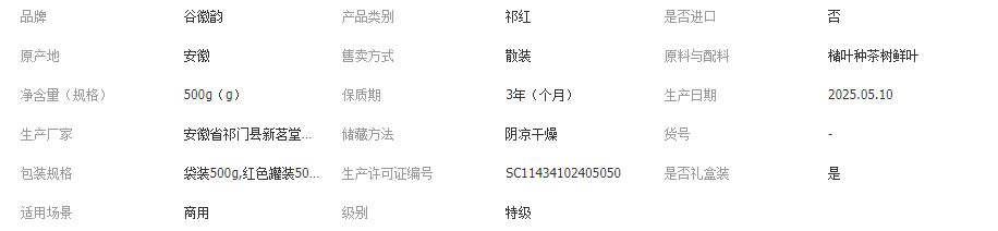 安徽天徽茶业有限公司发布的祁门红茶2025新茶特级高山春茶茶叶自己喝浓香型袋装散装批发500g图集库
