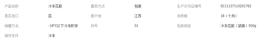南京市江宁区壹莱水产品商行发布的新品冷冻花胶500g/袋20-22条佛跳墙捞饭原料美味食材图集库