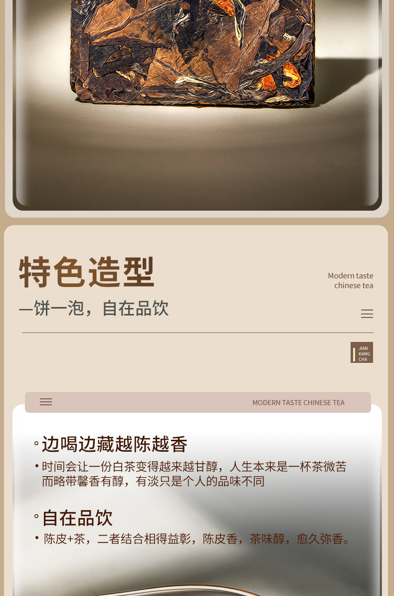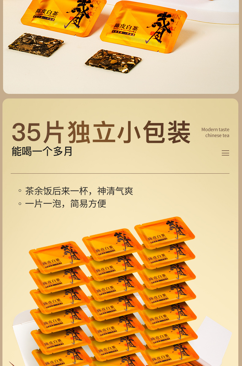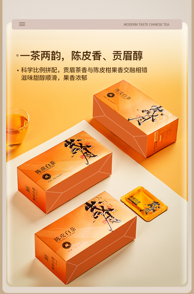 福建省安溪百誉生物科技有限公司发布的陈皮白茶白牡丹寿眉老白茶贡眉小方片饼干茶茶叶一件代发盒装175g图集库