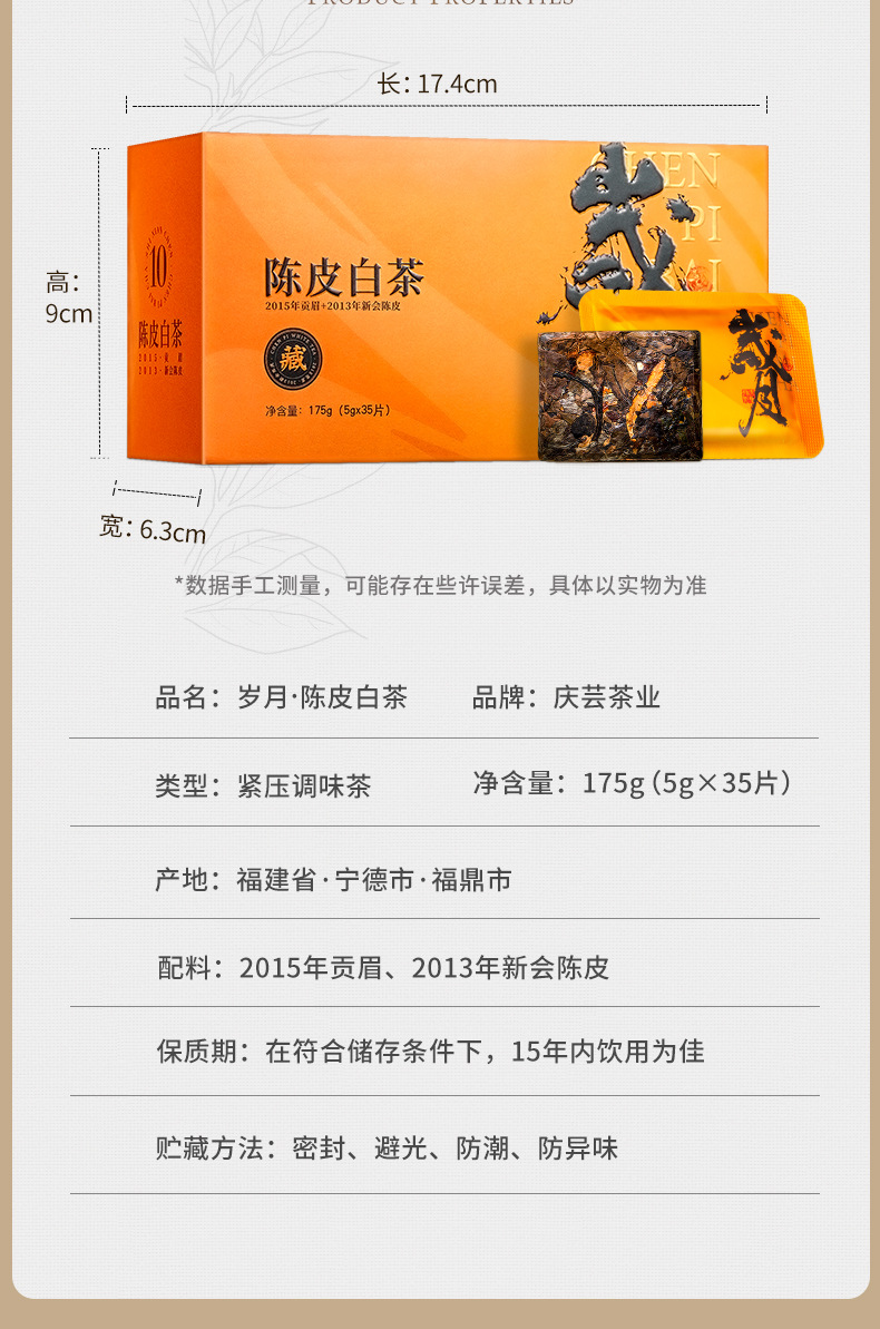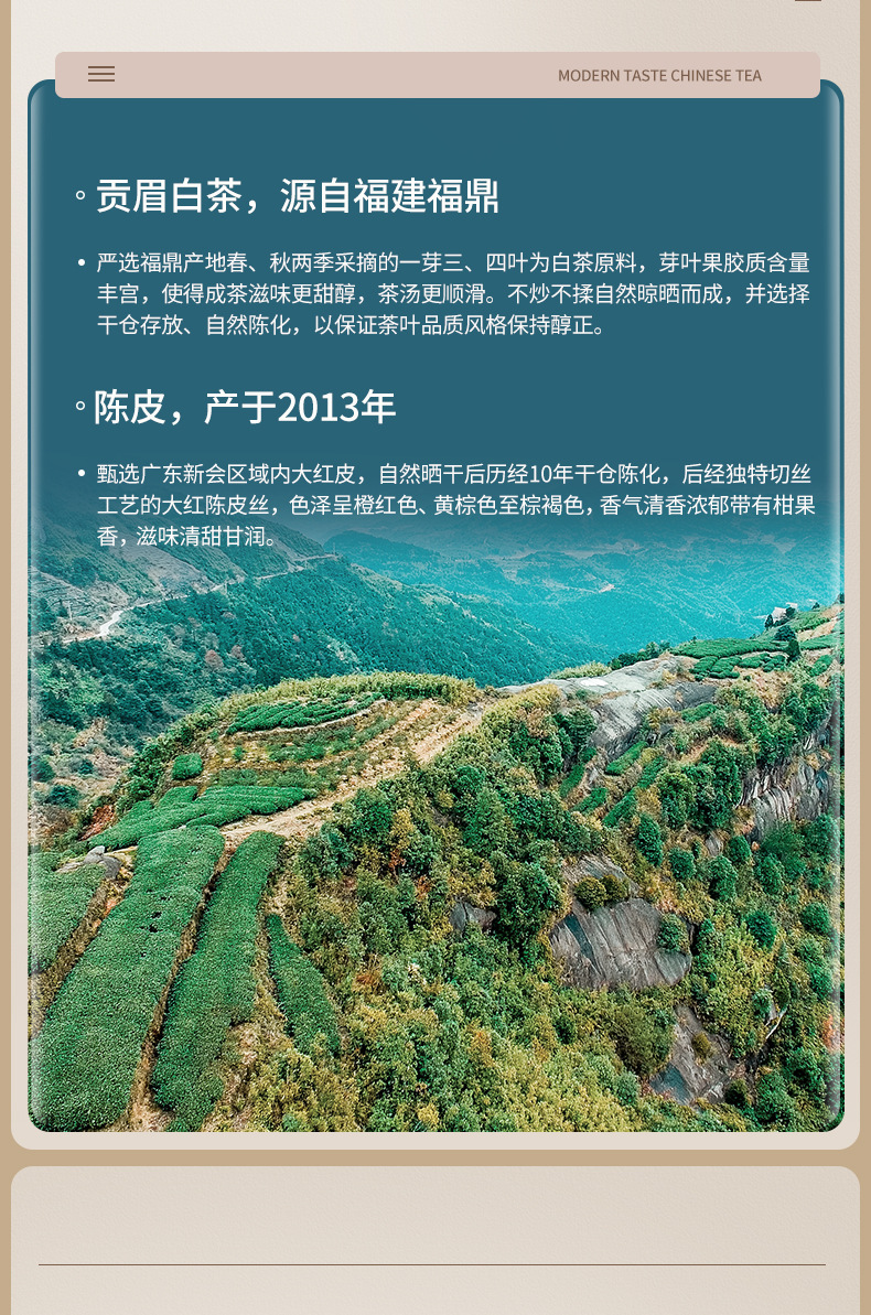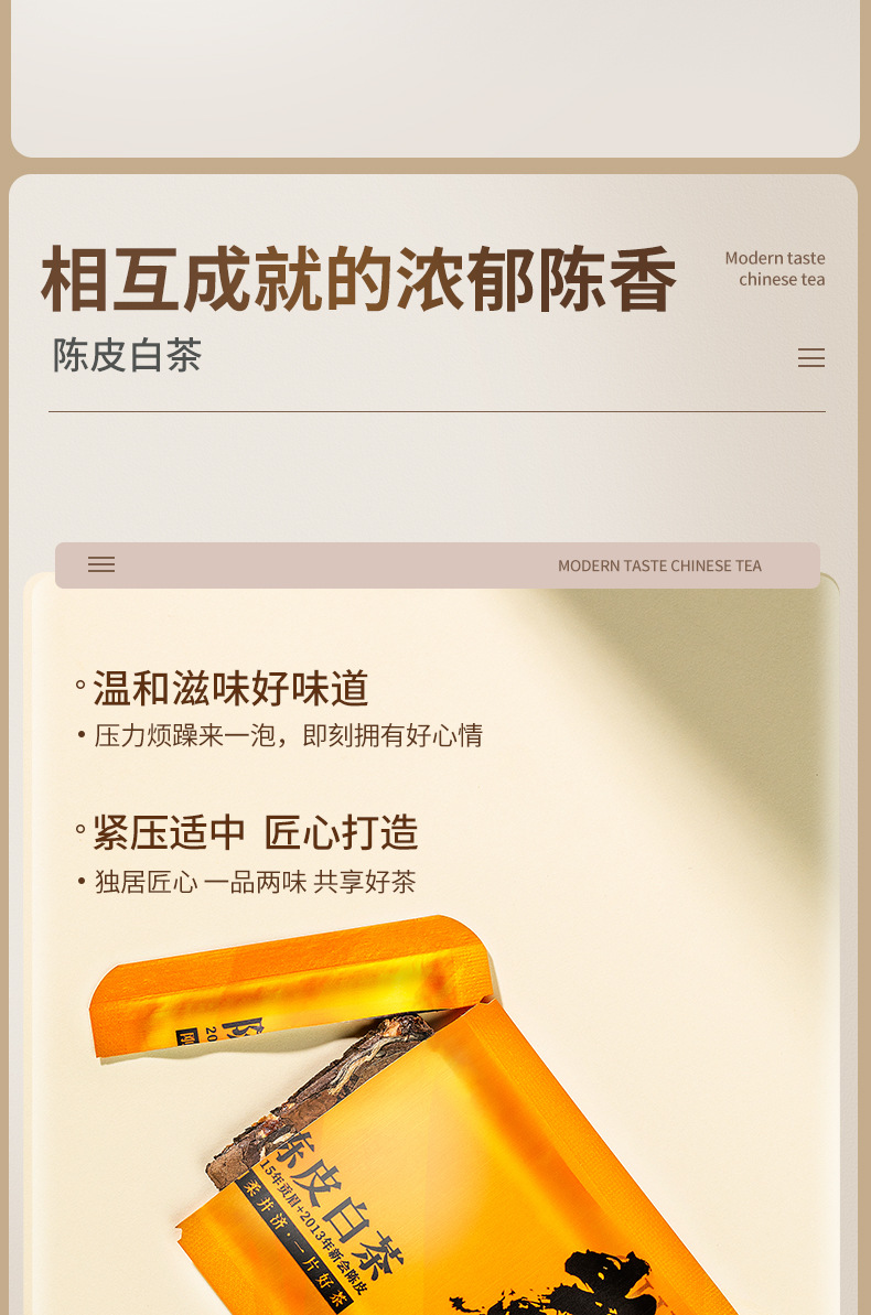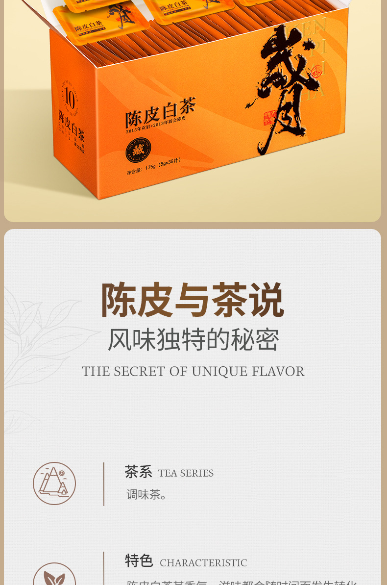福建省安溪百誉生物科技有限公司发布的陈皮白茶白牡丹寿眉老白茶贡眉小方片饼干茶茶叶一件代发盒装175g图集库