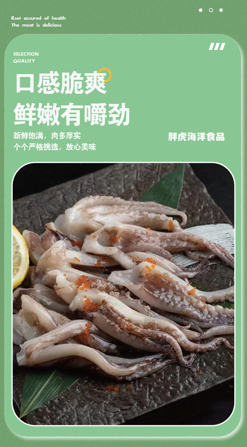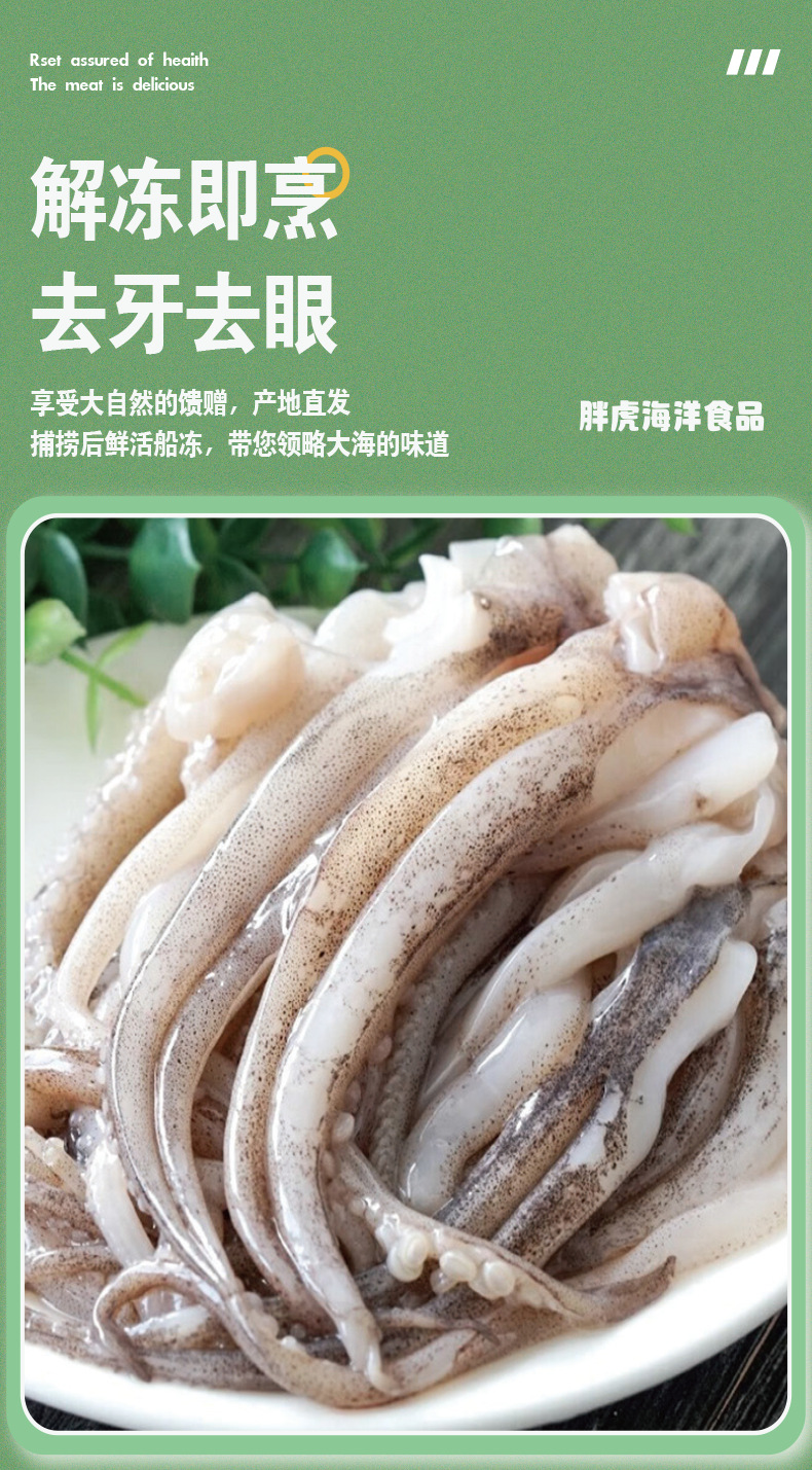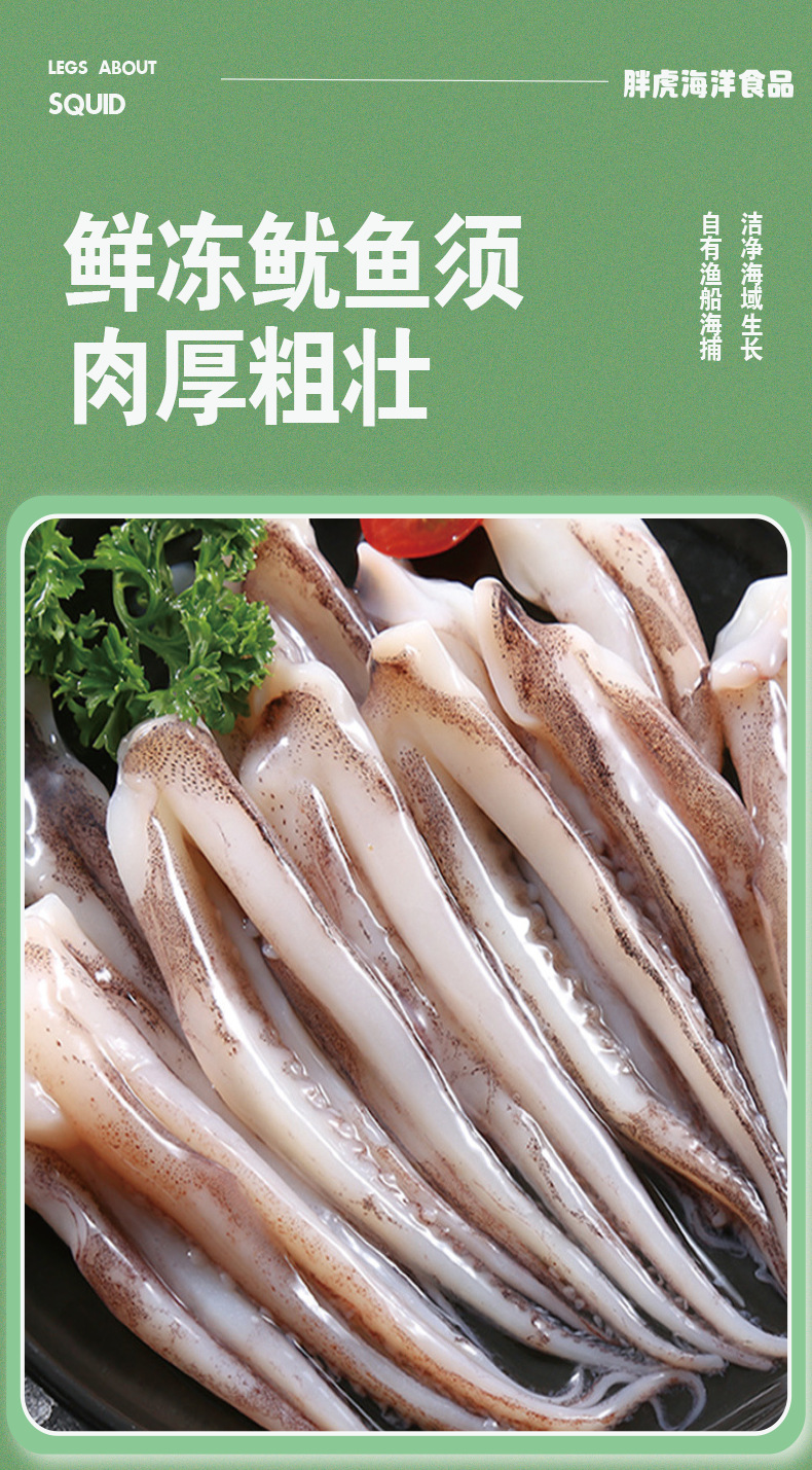 连云港胖虎海洋食品有限公司发布的二本足鱿鱼须海鲜去头火锅食材冷冻小鱿鱼须爪章鱼烧烤商用鱿鱼串图集库