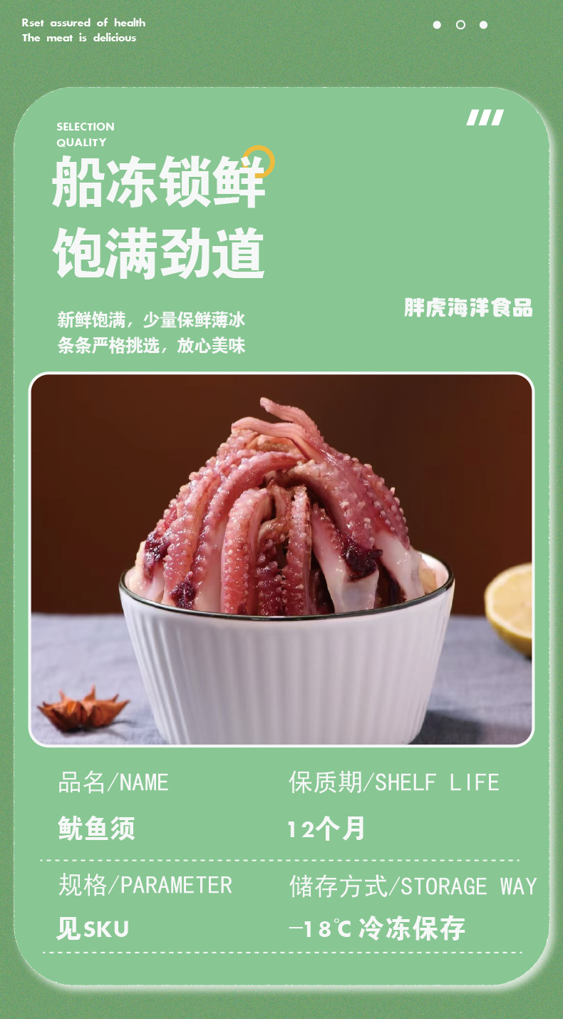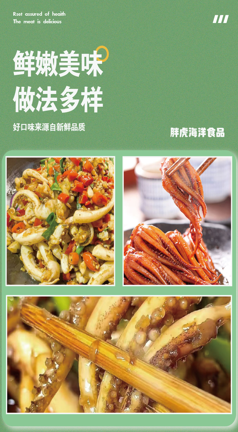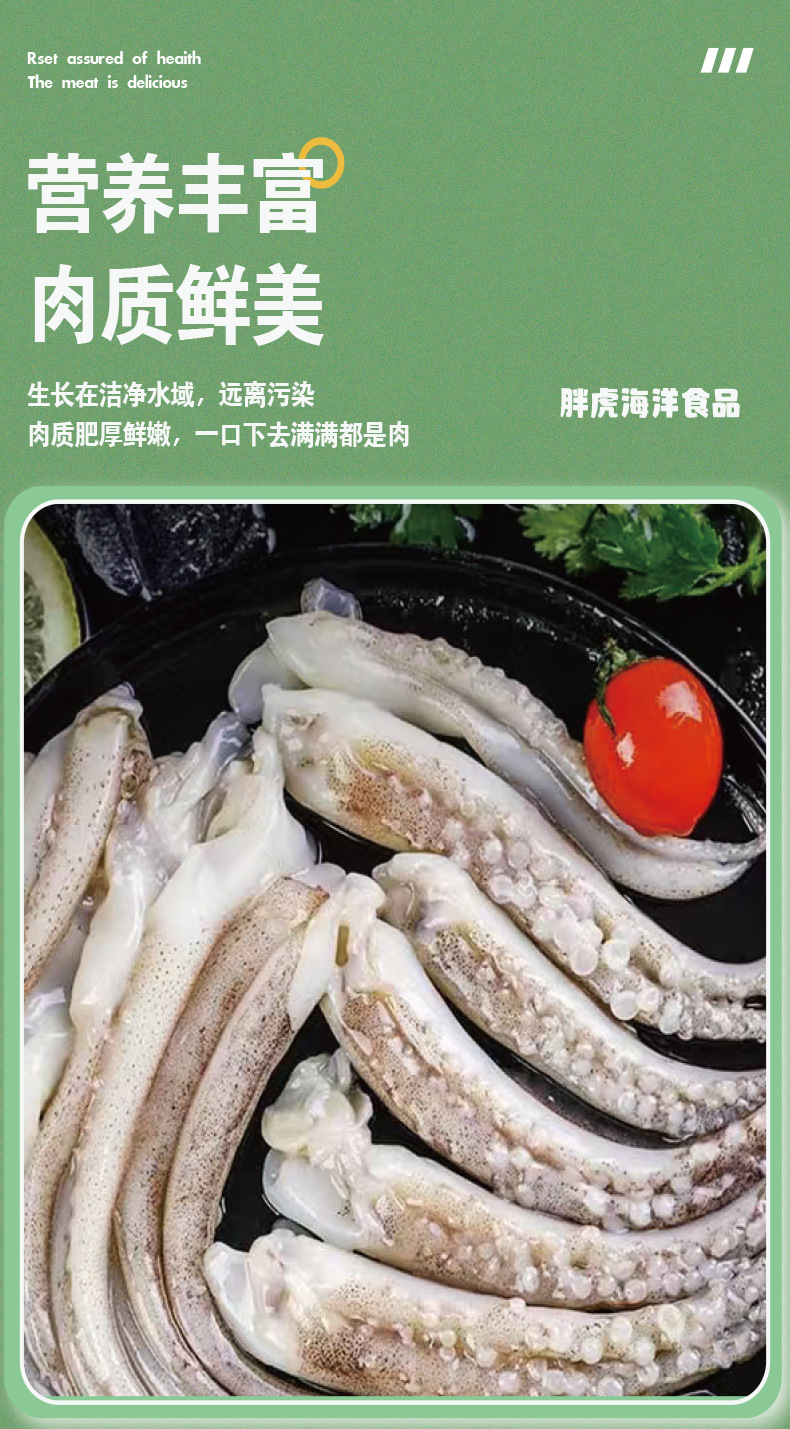 连云港胖虎海洋食品有限公司发布的二本足鱿鱼须海鲜去头火锅食材冷冻小鱿鱼须爪章鱼烧烤商用鱿鱼串图集库