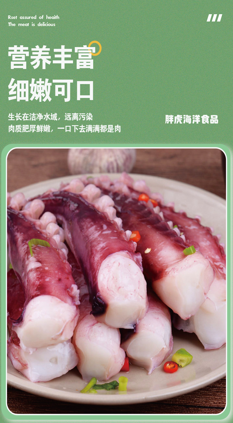 连云港胖虎海洋食品有限公司发布的新鲜捞汁大号章鱼足八爪鱼海鲜水产冻品冷冻特大章鱼足商用批发图集库