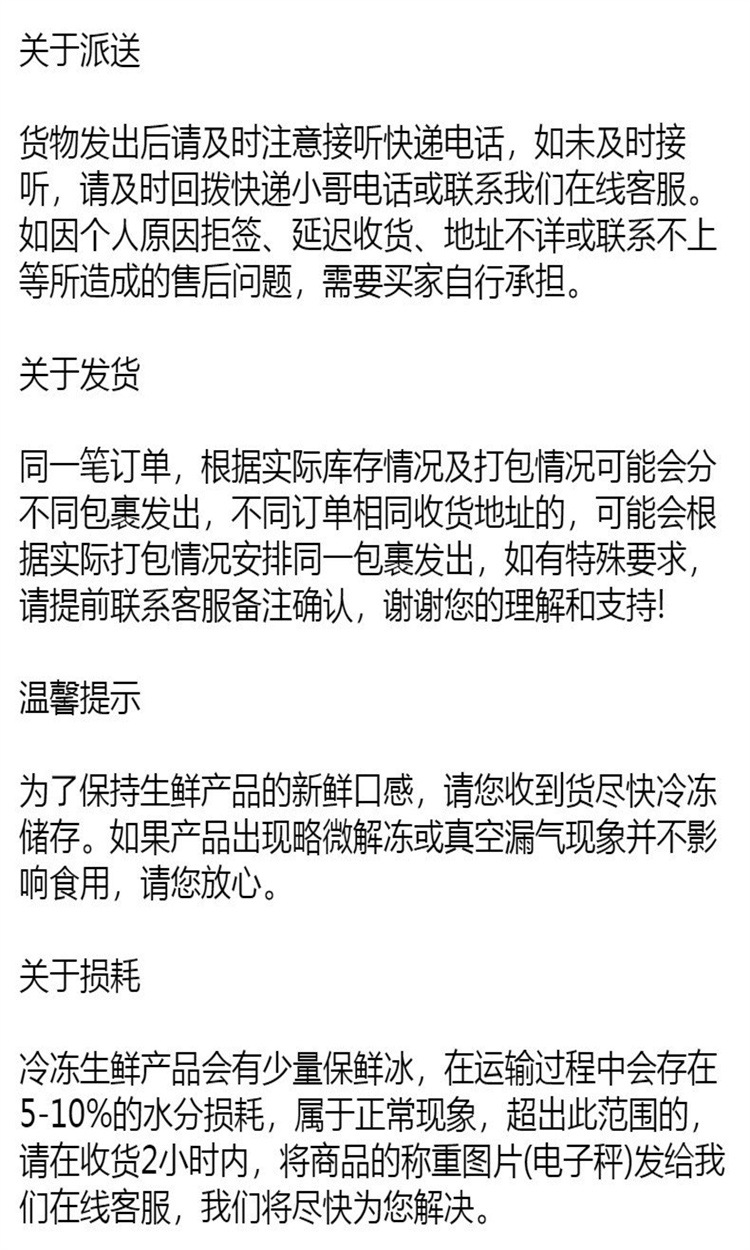 本品默认顺丰快递,如需冷链物流请与客服联系具体车辆,接货事宜~