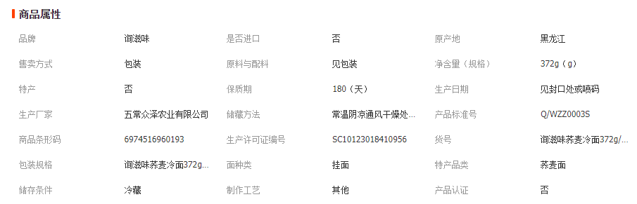 五常市众泽农业有限公司发布的询滋味荞麦冷面372g*6袋/箱族风味东北特色四包料包商用家用冷面图集库