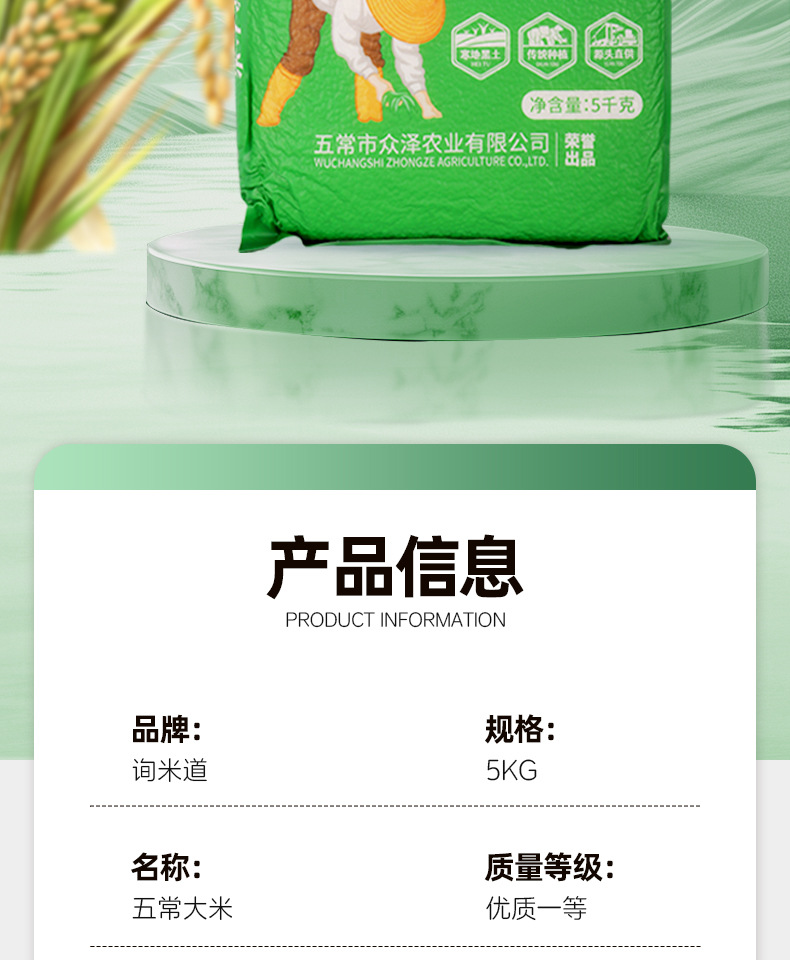 五常市众泽农业有限公司发布的厂家批发询米道五常大米5KG/袋中长粒当季东北大米真空包装现货图集库