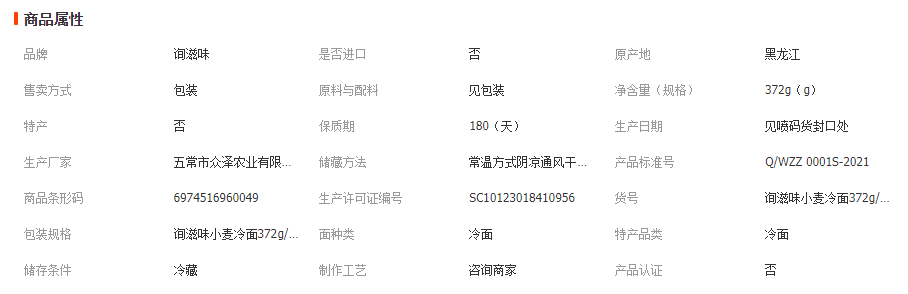 五常市众泽农业有限公司发布的询滋味小麦冷面372g*7袋/箱朝鲜风味冷面速食东北大冷面四包料包图集库