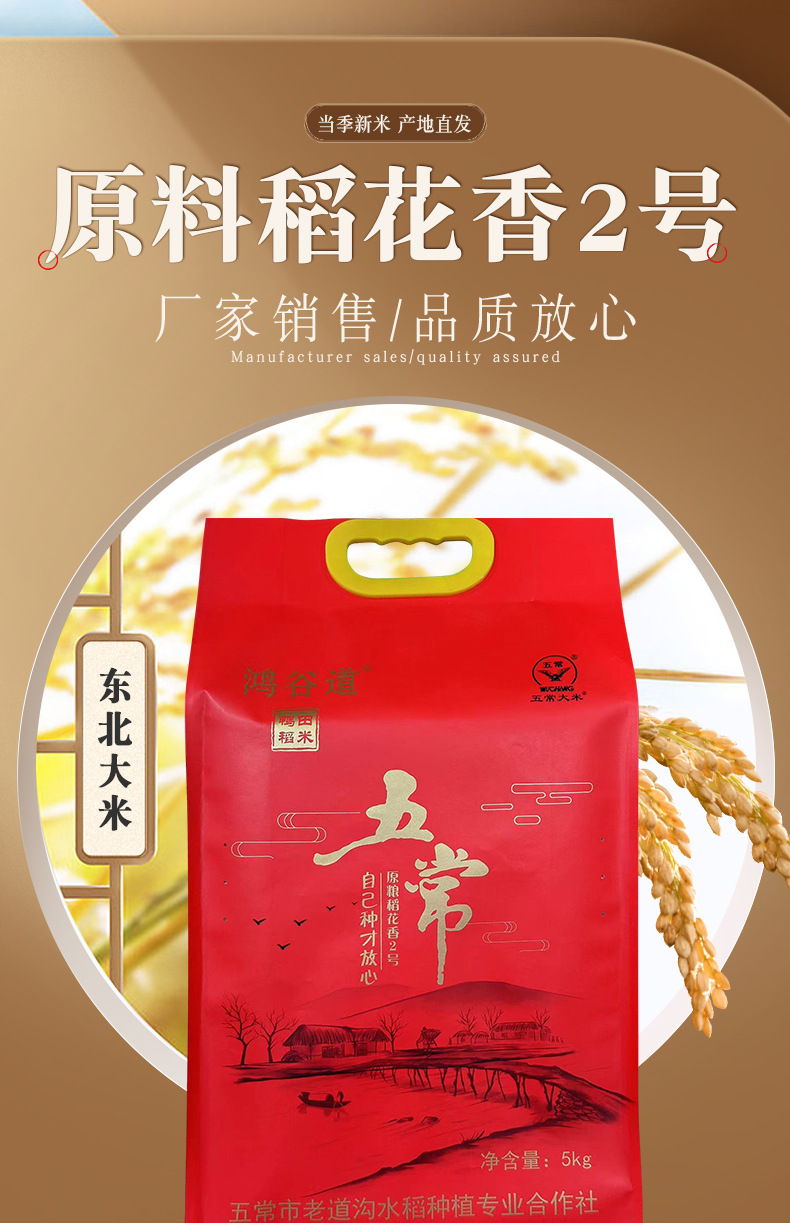 五常市老道沟米业有限公司发布的厂家销售鸿谷稻五常大米原粮稻花香2号真空包装10斤装黑龙江大米图集库
