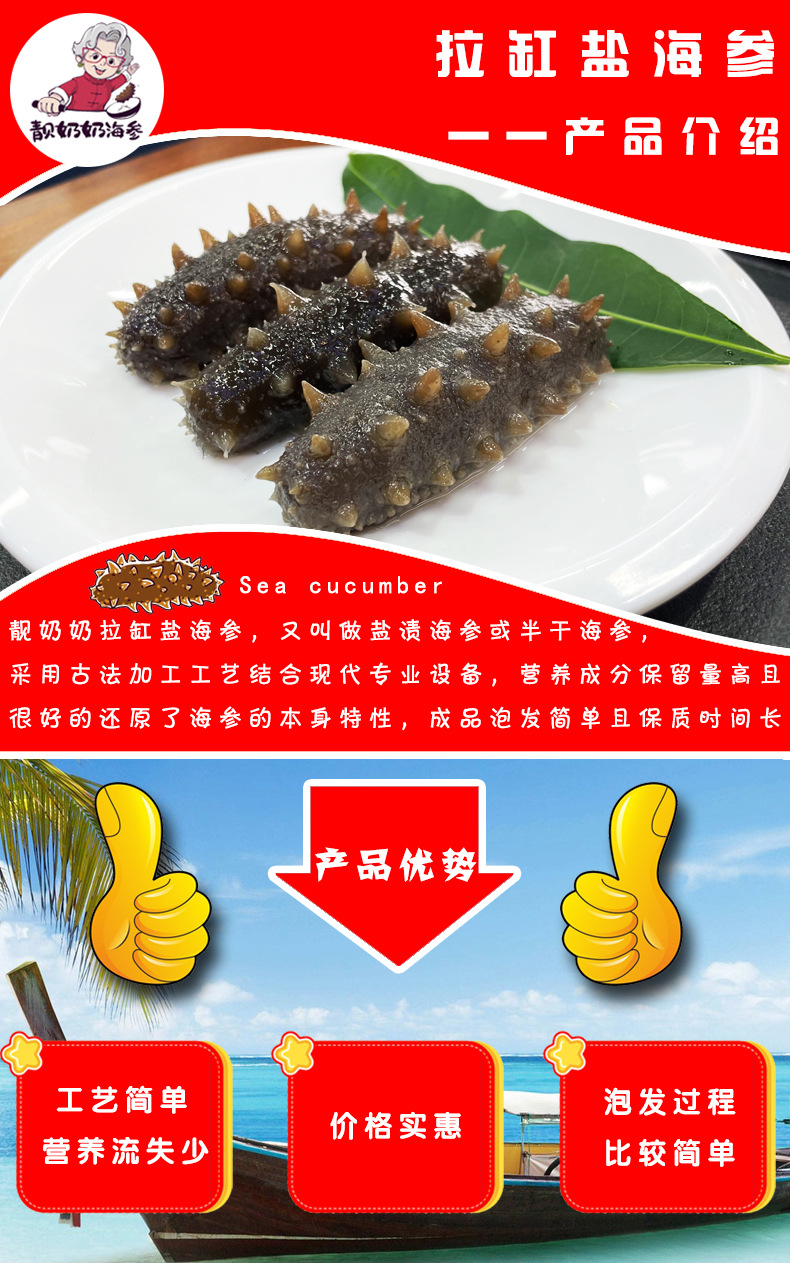 大连靓奶奶海参产业发展有限公司淄博分公司发布的工厂批发威海刺参北方刺大火拉缸盐盐渍海参大小头数请咨询图集库
