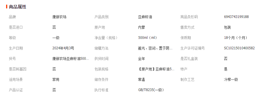 内蒙古牧品商贸有限公司发布的康新农场正宗纯亚麻籽油物理一级冷榨内蒙古胡麻食用油天 然亚麻酸图集库