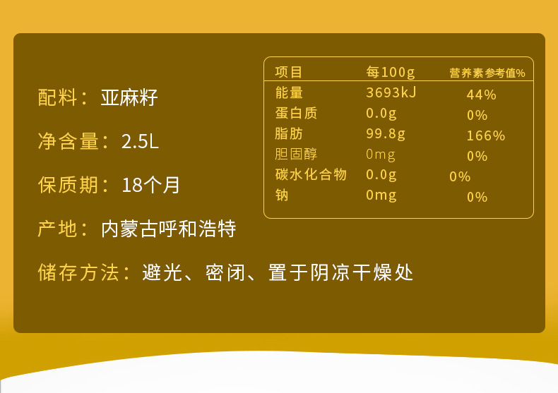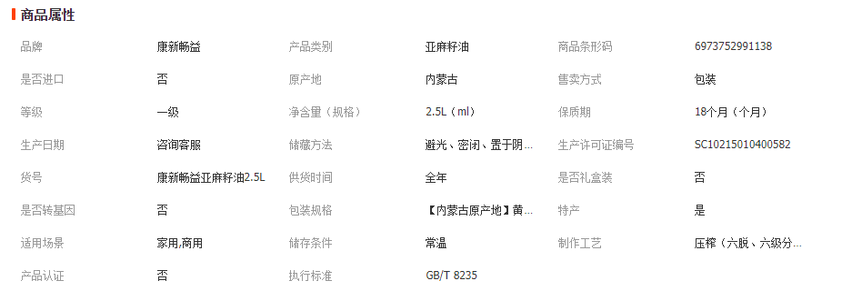 内蒙古牧品商贸有限公司发布的康新畅益亚麻籽油2.5L内蒙古原产地特产物理冷榨家庭食用油图集库