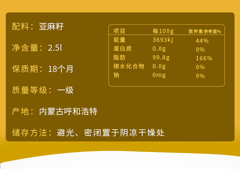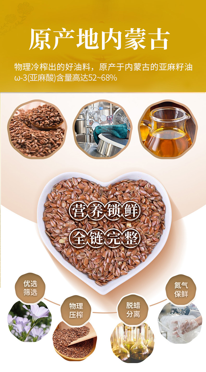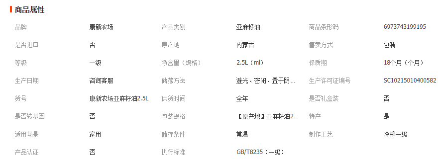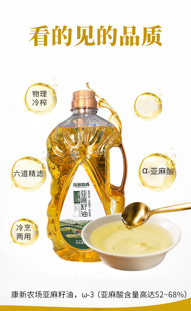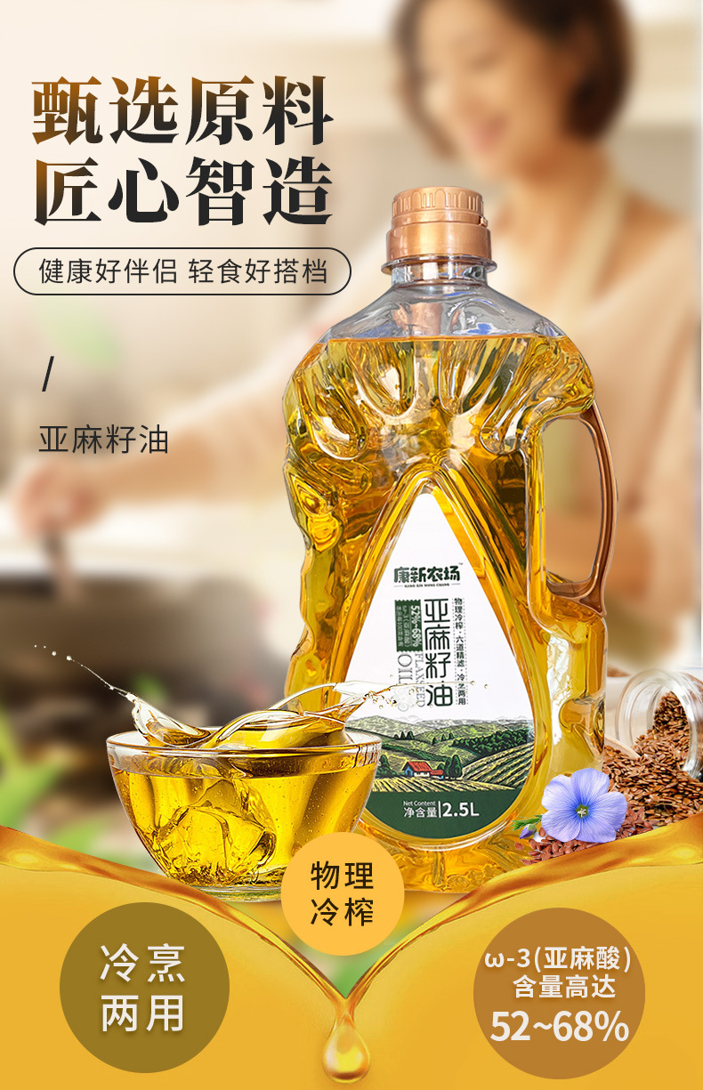 内蒙古牧品商贸有限公司发布的康新农场纯亚麻籽油2.5L正宗冷榨一级胡麻食用油内蒙古天 然亚麻酸图集库