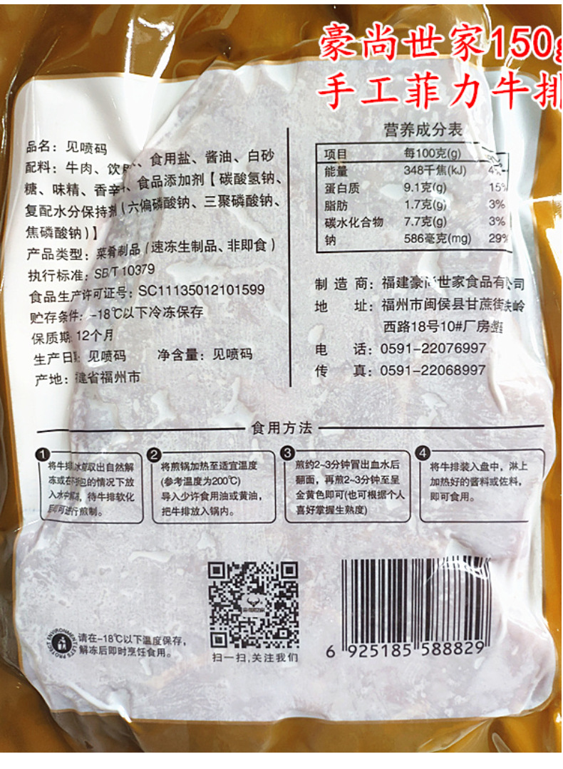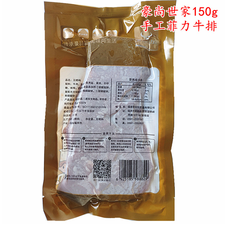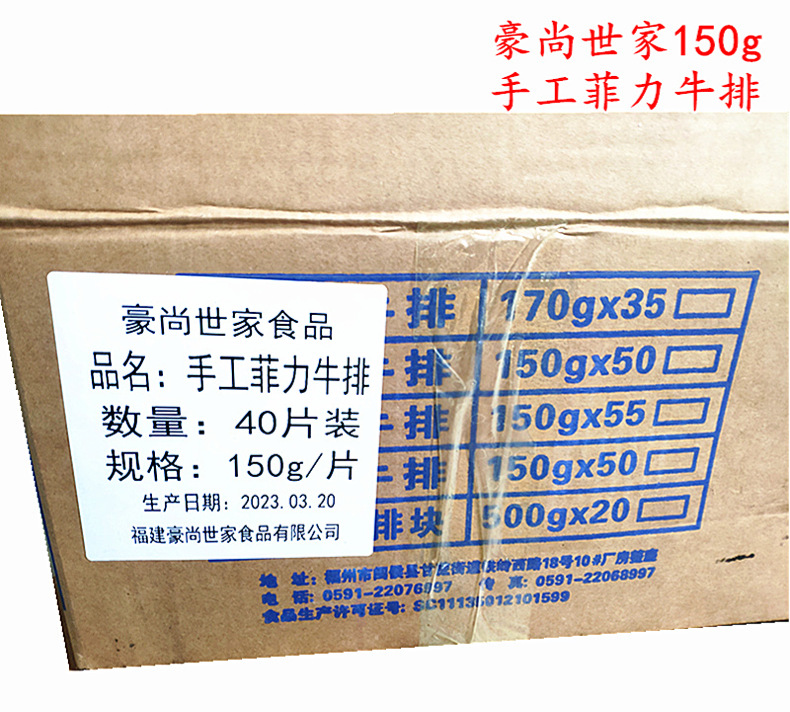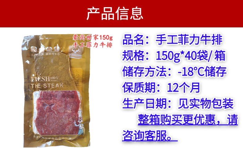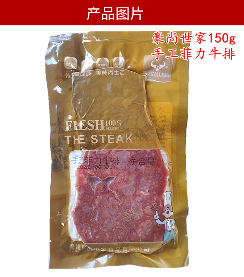 合肥鸿润德商贸有限责任公司发布的豪尚世家150g手工菲力牛排调理腌制牛排冷冻牛排家用商用包邮图集库