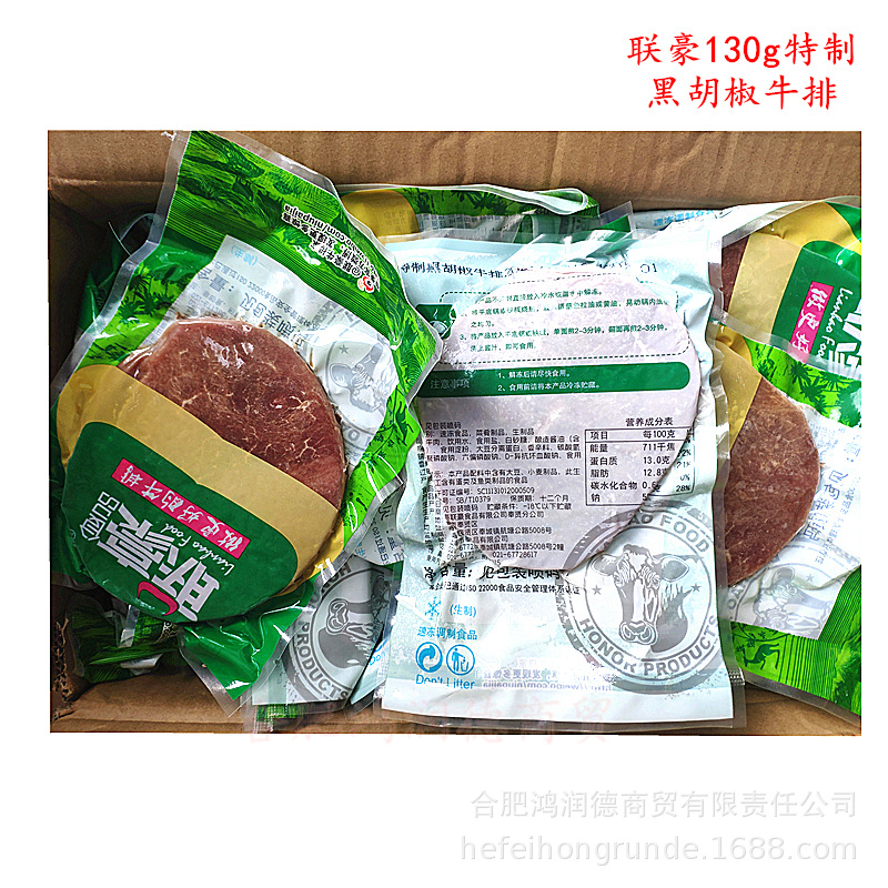 合肥鸿润德商贸有限责任公司发布的联豪130g特制黑椒牛排冷冻调理牛排整箱更优惠江浙沪皖包邮图集库