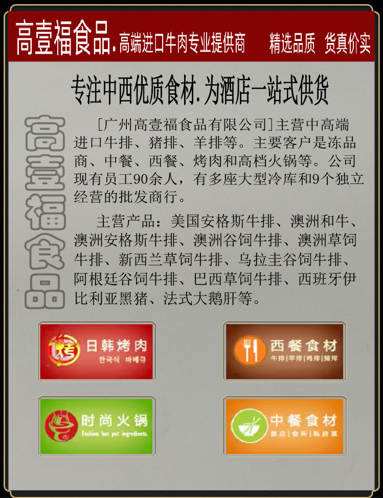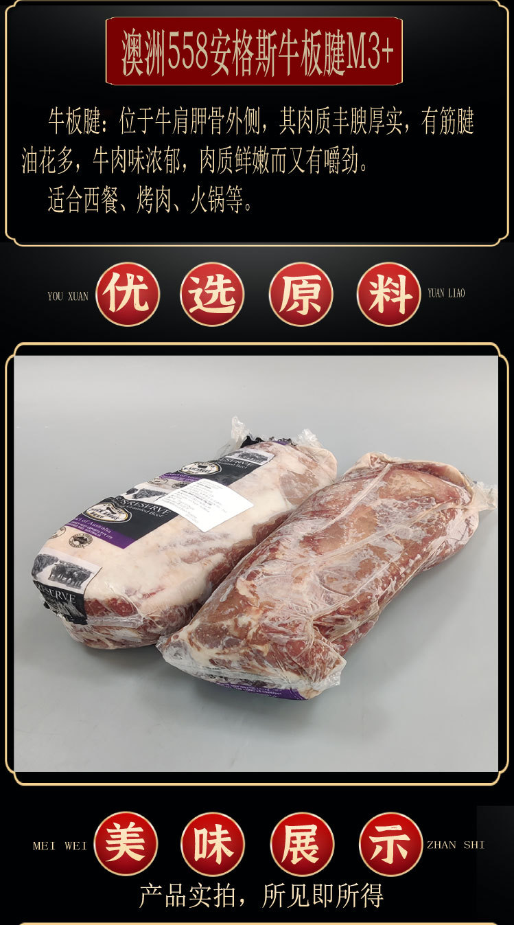 广州市高壹福食品有限公司发布的澳洲558厂安格斯牛板腱M3谷饲300天雪花原切牛排整切健身口粮牛肉图集库