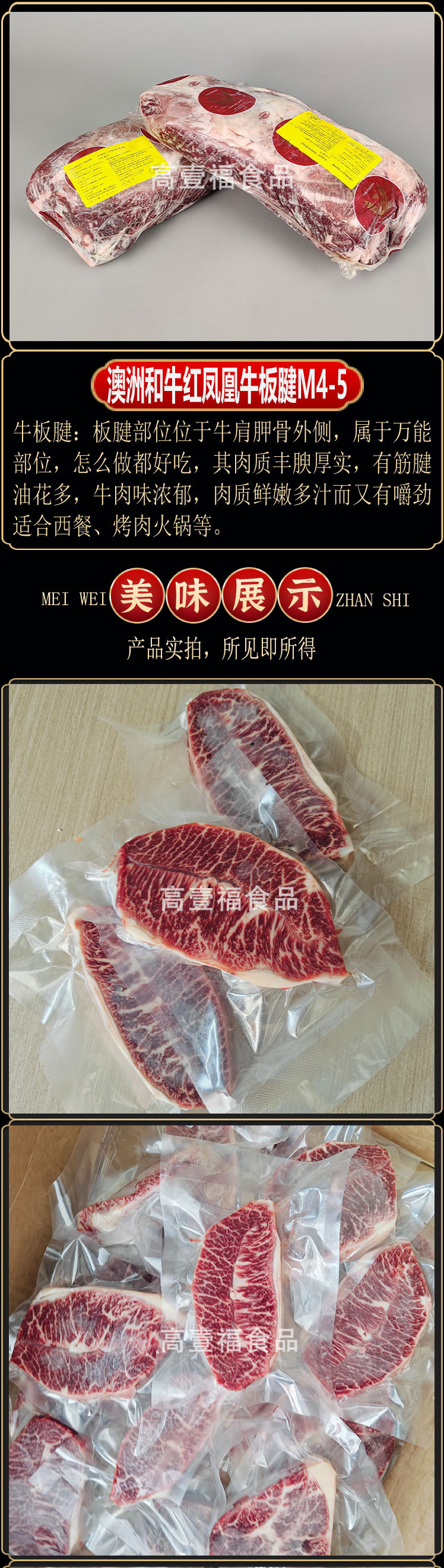 广州市高壹福食品有限公司发布的澳洲和牛红凤凰203厂牛板腱M4-5谷饲雪花原切牛排整块整切牡蛎肉图集库