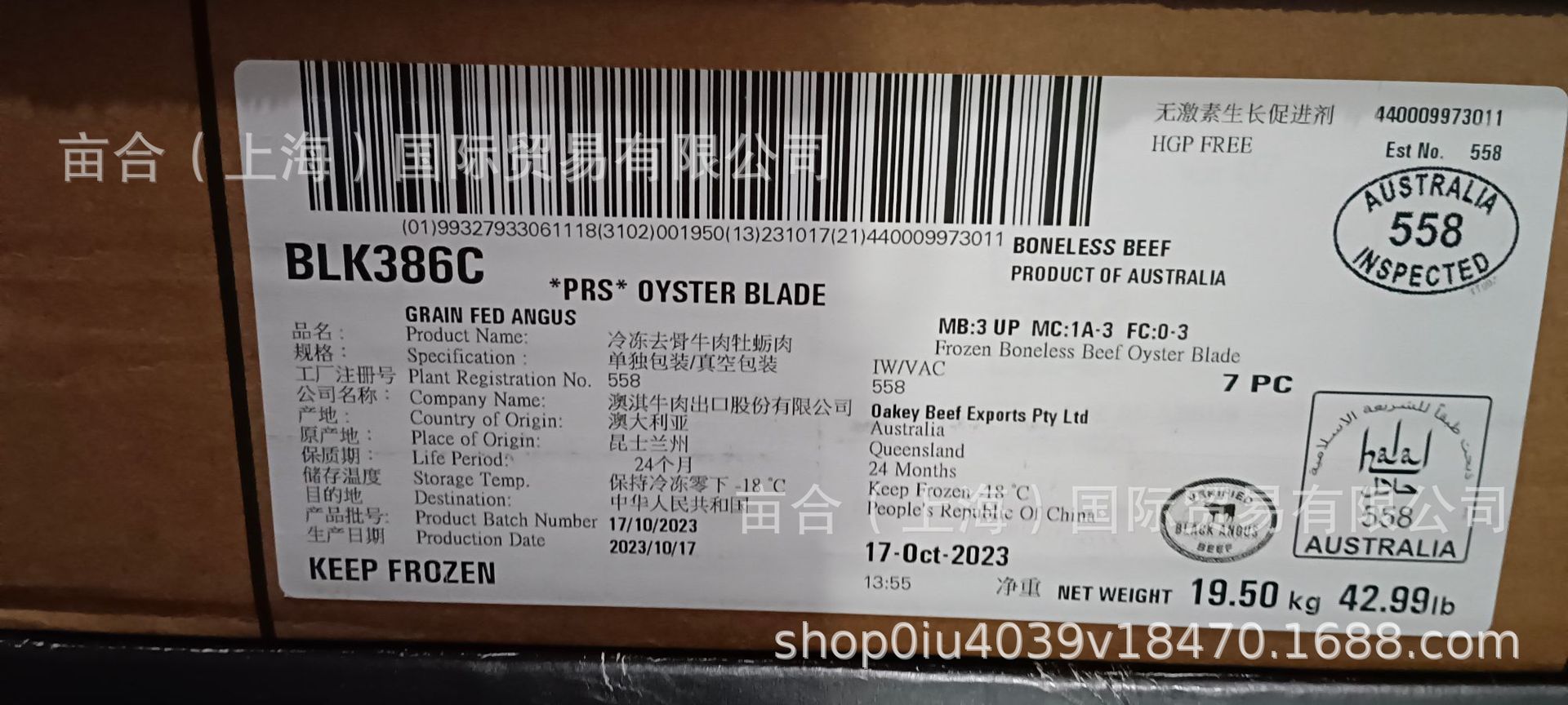 亩合(上海)国际贸易有限公司发布的原切牛肉澳洲558厂MB3up板腱适用于西餐牛排、烤肉、火锅、健身餐图集库