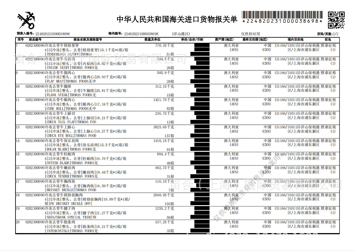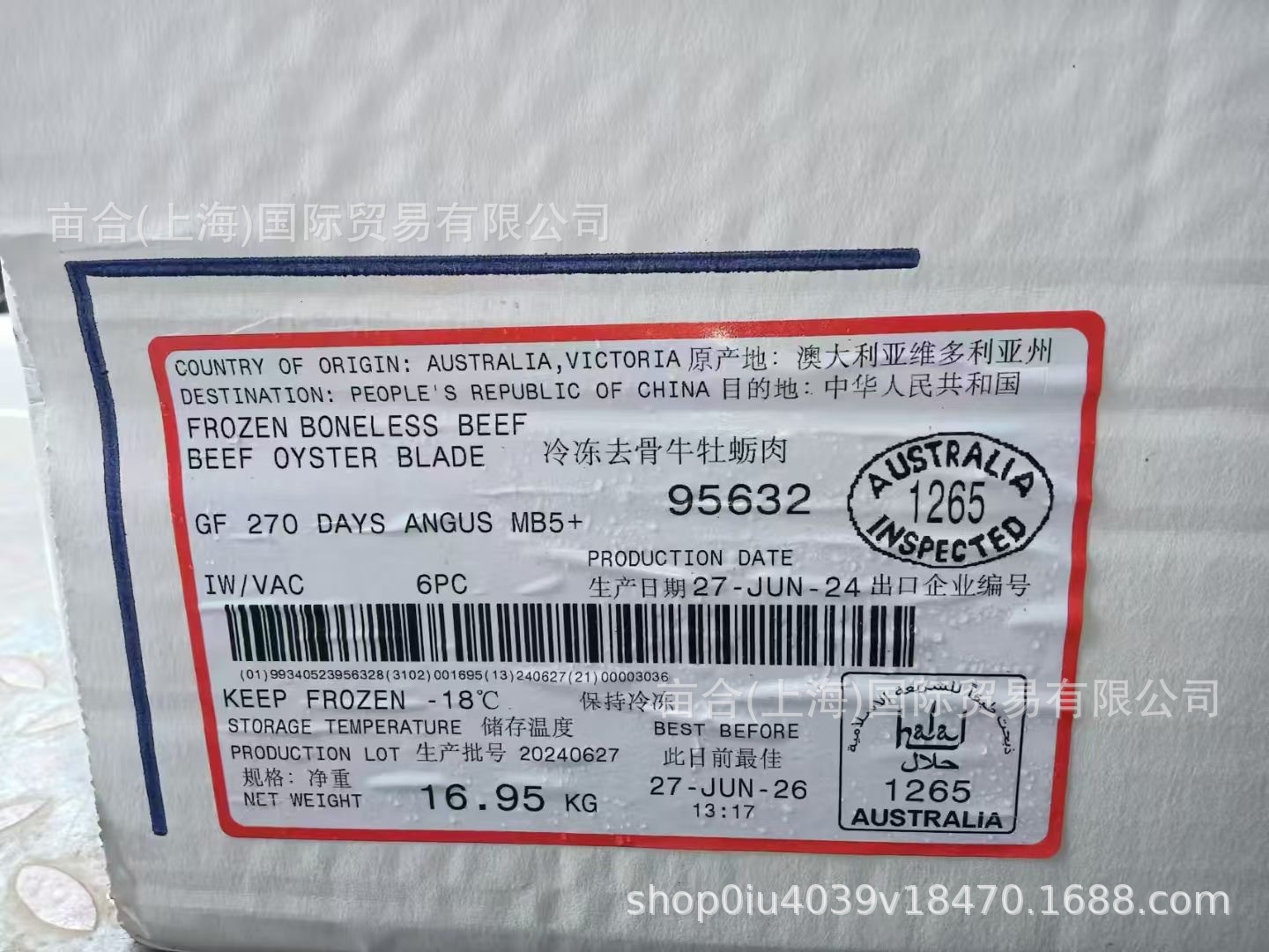 亩合(上海)国际贸易有限公司发布的澳洲1265厂THOMAS FOODS谷饲270天5+板腱适用于西餐、烤肉、火锅图集库