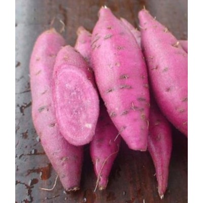 群紫一号:叶*形,复缺刻,叶色紫绿,顶叶紫红,茎、叶柄红色,叶柄长而粗,叶片大,产菜量大,叶菜美观好吃,营养价值高,有较好的菜用开发价值。该品种茎蔓粗短,分枝多,半直立生长。薯块纺缍型,烘干率28—30%,薯皮薯肉紫红色,熟后紫黑色,食味香甜,纤维少,富含*物质硒、碘等元素,适于蒸烤和薯类加工,开发前景好。该品种结薯早而集中,遗传了苏薯8号的高产早熟基因,早春覆膜栽培,8月份即可收刨,抢占市场,经济效益高。10月份收获的春薯,一般亩产3000—4000公斤,夏薯2500公斤左右。高抗茎线虫病、*,耐旱耐瘠薄,耐贮性好,萌芽性好,萌芽性强,是当前黑薯系列中综合性状较好的品种。种植密度:春薯3000株/亩,夏薯3500株/亩。