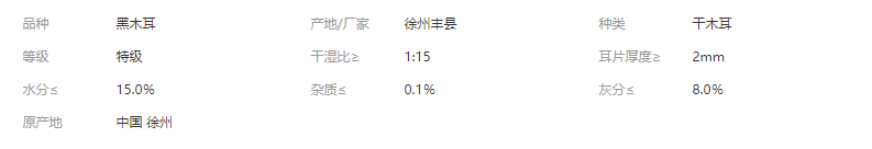 丰县毛木耳肉厚,口感脆滑爽口而且营养丰富,木耳含蛋白质、脂肪、多糖和钙、隣、铁等元素以及胡萝卜素、维生素B1、维生素B2、烟酸等,还含磷脂、固醇等营养素。还有药理价值,影响血液系统,*,影响生物合成,減轻*,*作用,**,*作用,*,*、*,祛除*,清胃涤肠*。
