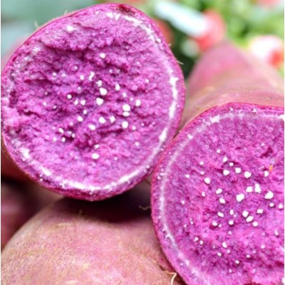 紫薯又叫黑薯,薯肉不是寻常的白色或黄色,而是呈紫色至深紫色。紫薯的紫色物质就是近年赫赫有名的花青素。花青素是一类广泛存在于蓝莓、红(紫)葡萄、紫甘蓝、紫茄子和紫薯等紫色蔬菜水果中的黄酮类物质,有很强的抗氧化作用,能*,因而具有一定的保健价值。除花青素外,紫薯的其他营养成分与普通红薯差别不大。