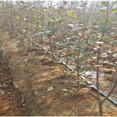 秦脆苹果苗施肥方法:可采用环状沟、条沟、放射沟施、穴施等,*交替轮换使用各方法,隔年更换施肥位置。另外肥料应施于树冠*投影范围内根系分布集中的区域,深度 20-35 厘米,混合均匀,避免烧根。生长季适量追肥,前期以氮肥为主,磷肥为辅,后期以磷钾肥为主,如硫酸钾、氯化钾或磷酸二氢钾铵,施入年总钾量的1/2,以7 月上旬到8 月上旬为宜。秦脆苹果全年应掌握4 个灌水时期。即冬季封冻前、萌芽至开花期、新梢生长期和果实膨大期。重点要确保新梢生长期对水分的需求。其余应根据天气状况和土壤墒情来确定是否灌溉,保持土壤湿度为田间*持水量的60%-80%,低于60%时应及时灌溉。灌水方式宜采取盘灌、沟灌等方法局部灌溉。避免大水漫灌。灌溉后及时浅耕,防止土壤板结