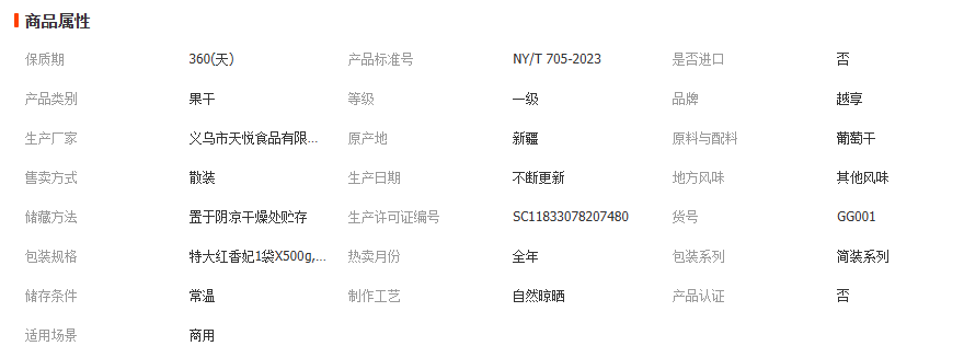 义乌市天悦食品有限公司发布的新疆吐鲁番特产免洗大颗粒红香妃葡萄干特产提子干水果干零食批发图集库
