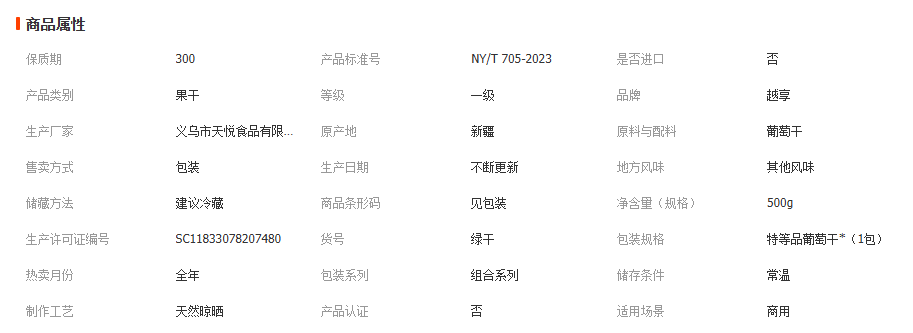 义乌市天悦食品有限公司发布的新疆葡萄干特级甄选绿葡萄干大颗粒无籽免洗果干办公零食批发葡萄图集库