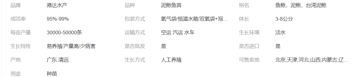 本场产品简单分类如下:鳝 鱼 类:鳗鱼苗、黄鳝苗虾 苗 类:澳洲淡水大龙虾苗饵 料 苗 类:台湾泥鳅苗、鲫鱼苗、麦鲮鱼苗等观 赏 鱼 类:锦鲤鱼苗、红鲤鱼苗、彩虹鲷鱼(红罗非鱼苗)、一帆风顺鱼苗小 型 鱼 类:马口鱼苗、溪水石斑鱼苗、淡水石斑鱼苗、太阳鱼苗、花星鱼苗肉食性鱼类:加州鲈鱼苗、海鲈鱼苗、桂花鱼(鳜鱼)苗、鸭嘴鱼苗、宝石鲈鱼苗、淡水鲳鱼苗、黑鱼苗、斑点叉尾鱼苗、南方大口鲶鱼苗、本地塘鲺鱼苗杂食性鱼类:丁桂鱼苗 、 刺鳅苗、黄骨鱼苗(黄辣丁鱼苗)、罗非鱼苗、三角魴(沙边)鱼苗 、花鲢 鱼苗、白鲢鱼苗、草鱼苗、金草鱼苗、青竹鲩鱼、鲤鱼苗、青鱼苗、金大头鱼苗、缩骨大头鱼苗