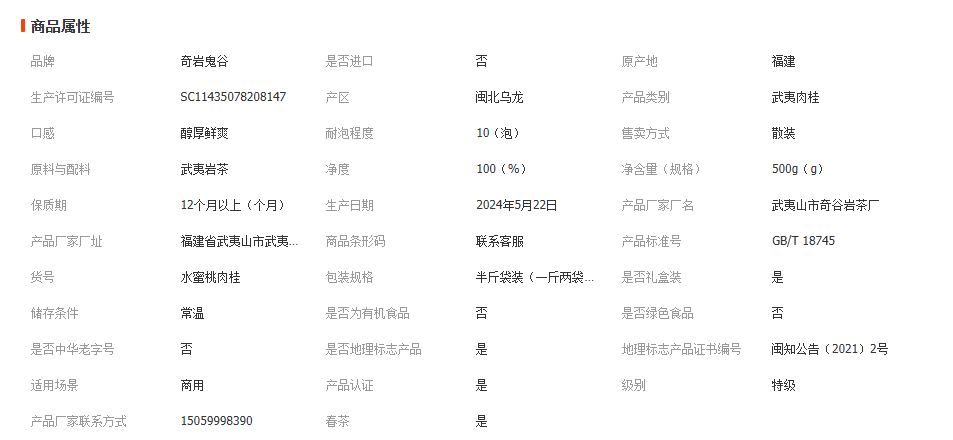 武夷山奇谷岩茶业有限公司发布的水蜜桃肉桂武夷山大红袍茶叶武夷岩茶500g乌龙茶散装批发熟果香图集库