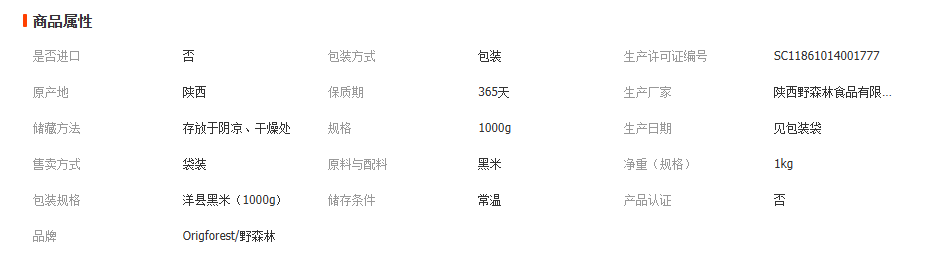 陕西野森林食品有限公司发布的野森林五谷杂粮洋县黑米1000g真空黑色营养图集库