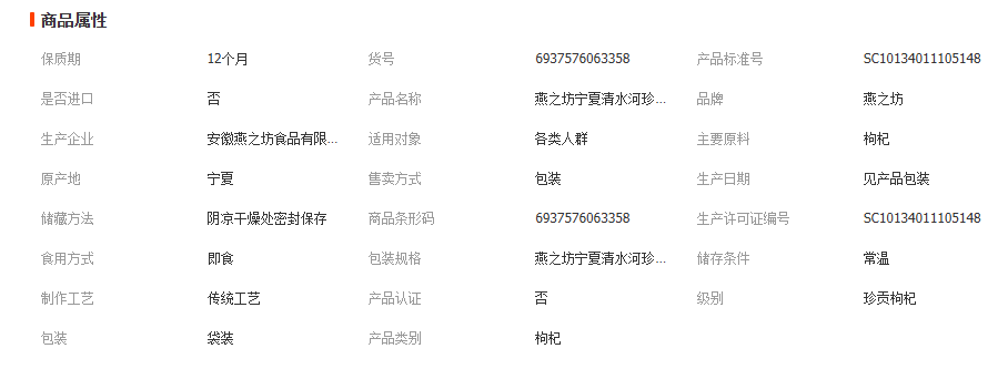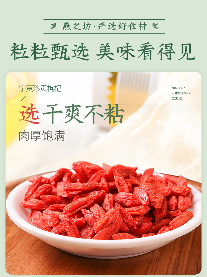 合肥越甲科技有限公司发布的燕之坊宁夏清水河珍贡枸杞200g煲汤泡茶免洗正宗宁夏中宁枸杞图集库