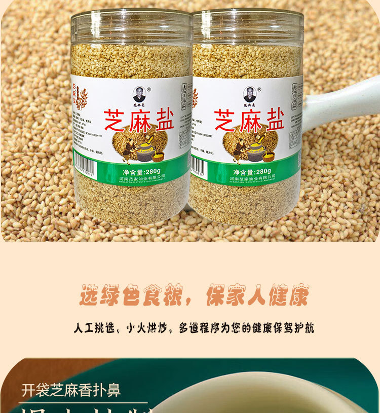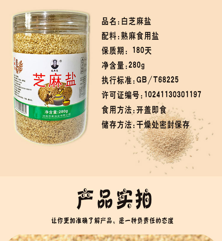 河南范家油业有限公司发布的【抢!石磨芝麻盐】河南传统特产范典亮牌现炒好吃优质芝麻盐图集库