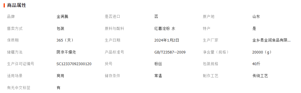 金乡县金润食品有限公司发布的鸭血粉丝汤专用粉丝 牛肉汤商用粉条 批发粉丝炖菜烧汤粉条40斤图集库