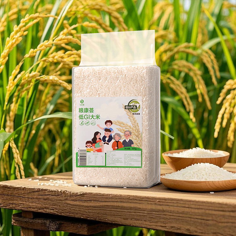 杭州粮康荟生物科技有限公司发布的低gi大米控糖大米500g一袋替代粗粮五谷杂粮健身孕妇食品礼盒批发图集库