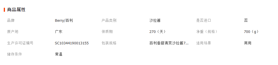 武汉味泰美食品有限公司发布的百利香甜清爽沙拉酱700g家用水果蔬菜鸡排寿司汉堡沙拉酱专用百丽图集库