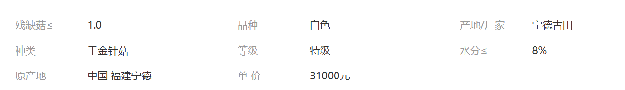 福建古田鸿松食用菌有限公司发布的工厂化白金针菇干品图集库